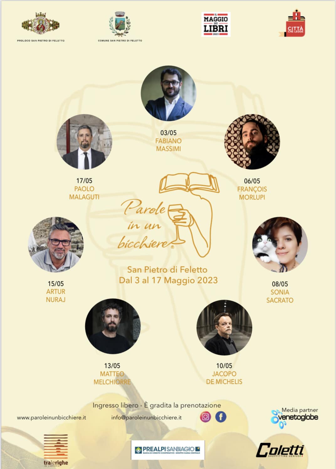 - Mercoledì 17 maggio ore 20.30 incontro con Paolo Malaguti all’Azienda Agricola Conte di Collalto a Susegana