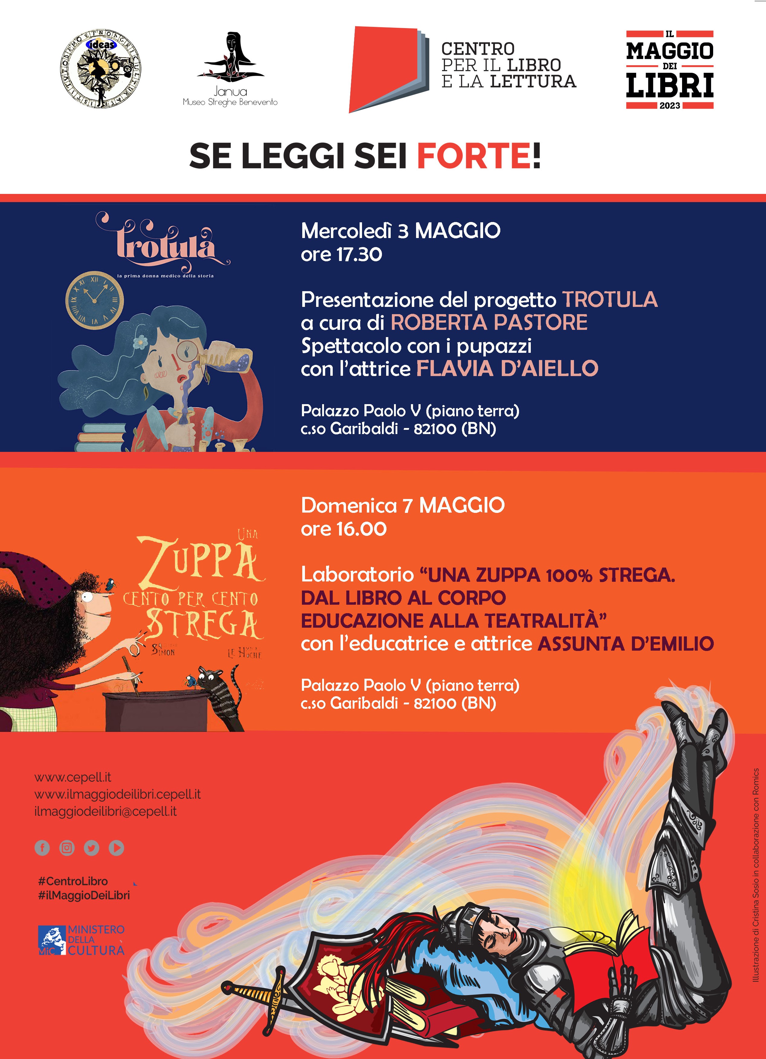 In questo magico pomeriggio sarà ospitato il progetto culturale e creativo TROTULA che ha l’intento di divulgare, con una comunicazione tra fiaba e racconto storico, i valori della prima donna medico della storia. La cultura magica del Sannio e quella di Salerno si incontreranno. I bambini e le famiglie che parteciperanno, potranno ascoltare l’attrice Flavia D’Aiello raccontare la fiaba di “Trotula” con i pupazzi, una fiaba che sarà introdotta da Roberta Pastore, autrice degli albi dedicati a questa