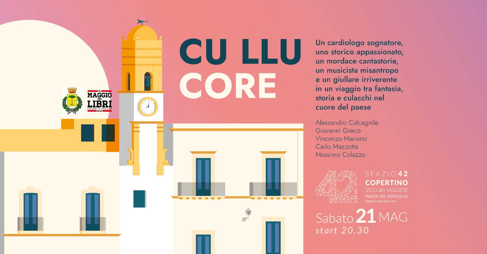 La rete di scuole ed Associazioni per il Patto per la Lettura di Copertino ha deciso di organizzare una serie di eventi legati da un comune filo conduttore ???il viaggio??? che ci permette di collegarci alla tematica dettata dal Cepell ???leggere per comprendere, passato, presente e futuro. A Conclusione degli eventi realizzati in biblioteca/ nelle scuole/ nelle associazioni, sabato 21 alle 9, ogni scuola/associazioni presenta nel Centro Storico di Copertino la sua performance in un flashmob. Il Centro storico di