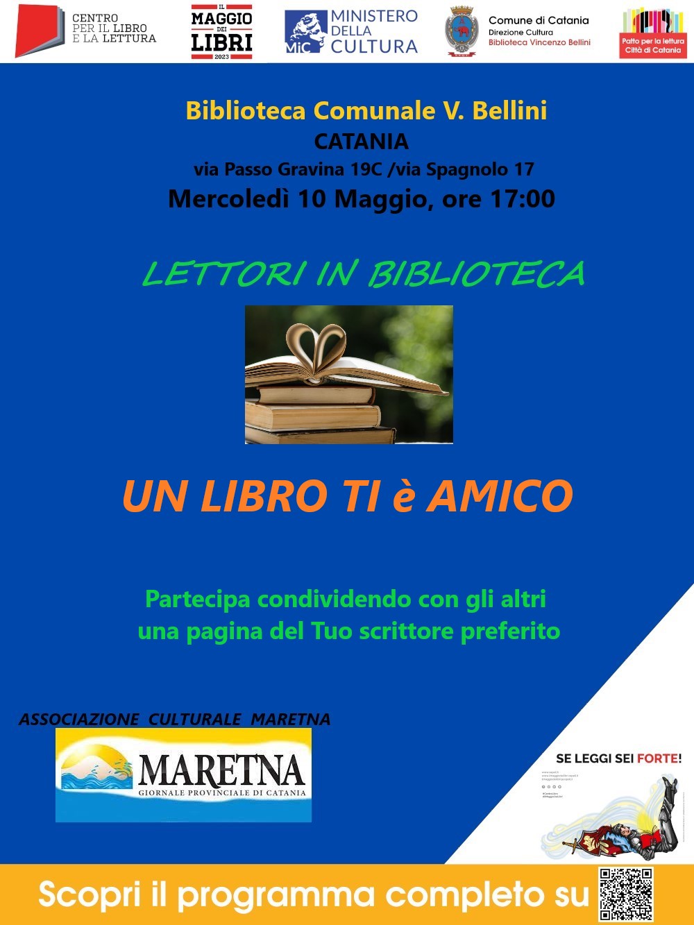 Il pomeriggio culturale, pensato dall'Associazione Culturale Maretna, vuole dare (in occasione del maggio dei libri e la disponibilità del comune di Catania con le sue strutture) voce a scrittori e lettori con le loro opere (poesie, romanzi) e la lettura di grandi autori italiani e stranieri (pure brani di filosofia e spiritualità), al fine di incuriosire l'ascoltatore e far si che ne cerchi i libri in librerie-biblioteche evidenziando il fine principale del maggio dei libri: la promozione della lettura e delle biblioteche.