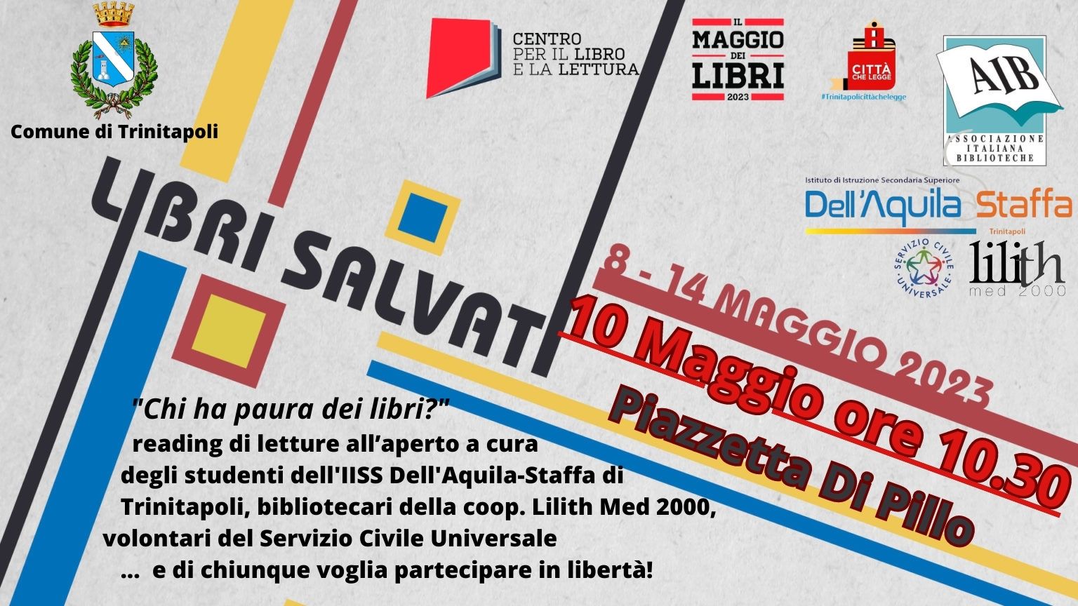 Le iniziative messe in campo per questa tredicesima edizione coinvolgono tutte le classi dell'Istituto, a partire dalla scuola dell'infanzia. Due sezioni si recheranno presso la libreria Cirasa (in siciliano "ciliegia")inaugurata nel novembre scorso e che vanta tantissime attività di promozione alla lettura con un coinvolgimento sempre più significativo nel territorio bagherese. Le due sezioni avranno la possibilità di realizzare un laboratorio intorno al libro “Il re del castello” di Marica Bersan e Claudio Cerrri, ed. Gribaudo. Due classi di quinta primaria saranno protagonisti di un laboratorio cucito intorno al classico ma intramontabile “Storia di una gabbianella e di un gatto che le insegnò a volare” di L. Sepulveda.Ed. Salani Le alunne gli alunni leggeranno ad alta voce brani del libro e condivideranno riflessioni ed una mostra di disegni.