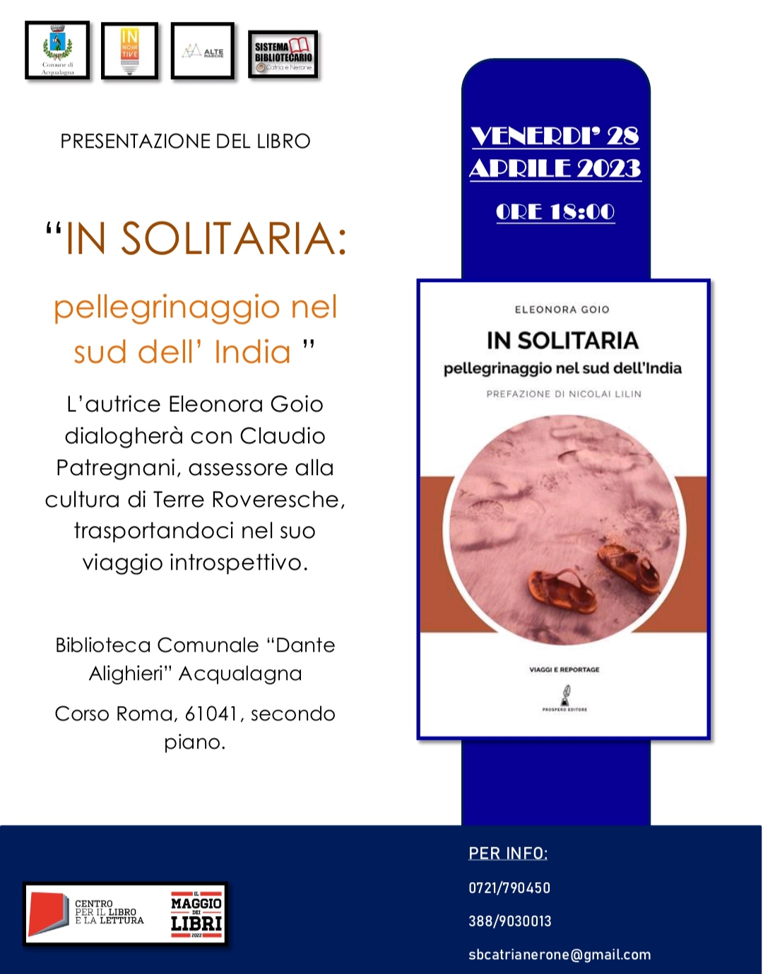 Presentazione del libro dell' autrice Eleonora Goio che dialogherà con Claudio Patregnani, assessore alla cultura di Terre Roveresche, trasportandoci nel suo viaggio
