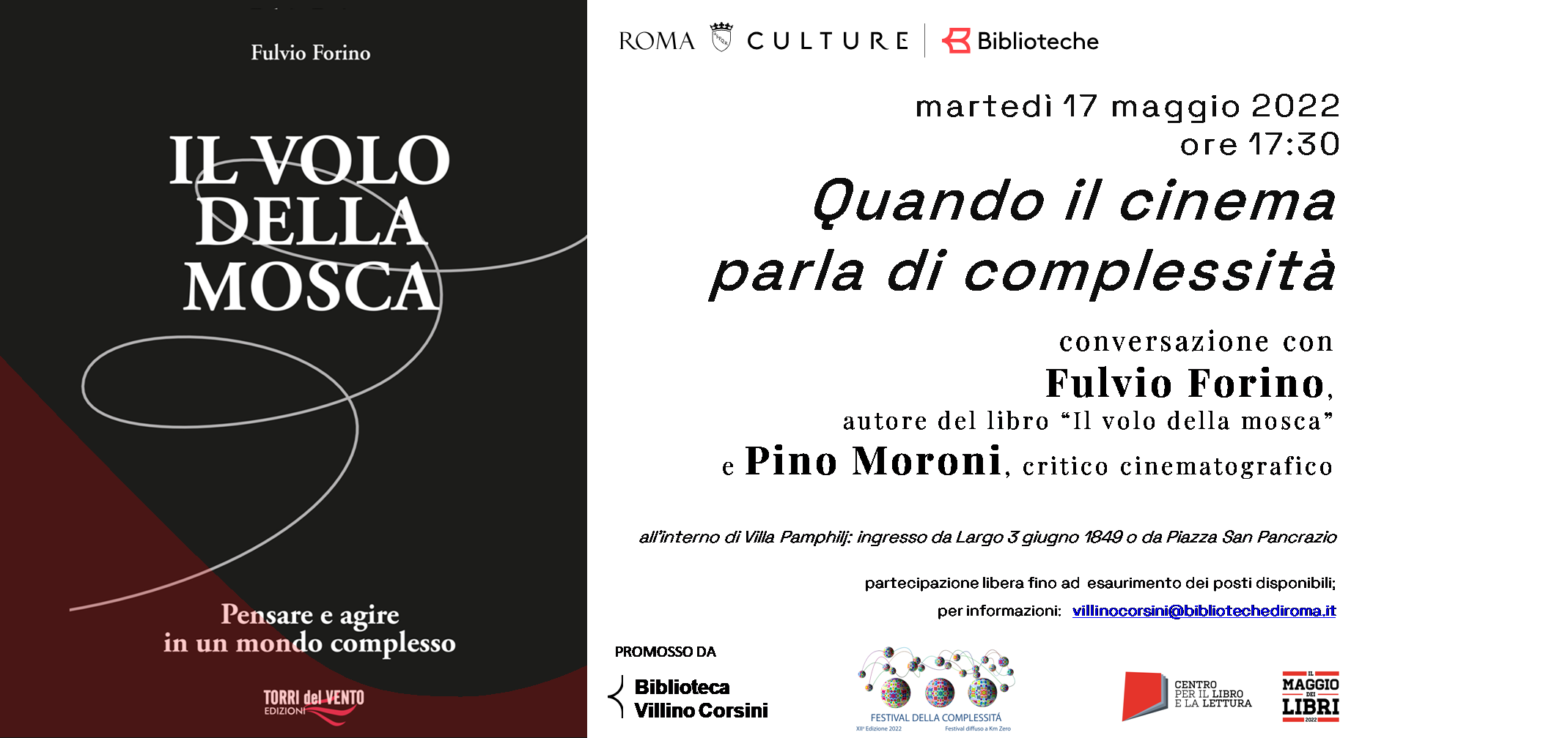 Nell'ambito del Festival della Complessit?? 2022, una conversazione con Fulvio Forino, medico e saggista, autore del libro ???Il volo della mosca: pensare e agire in un mondo complesso???, e con Pino Moroni, giornalista e critico cinematografico .