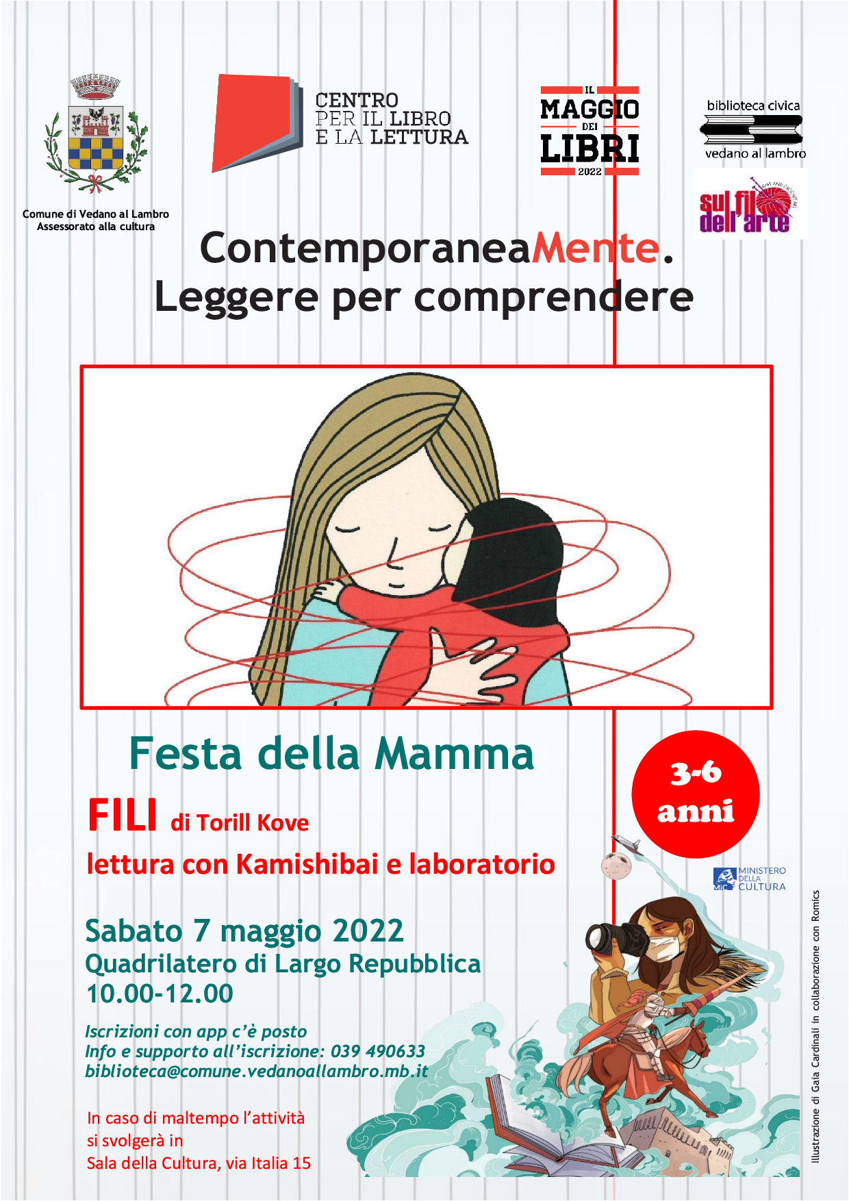 Per la Festa della Mamma lettura con il Kamishibai del libri "Fili" di Torill Kove a cura della Biblioteca civica di Vedano al Lambro. Seguir?? un laboratorio ludico-creativo in collaborazione con l'associazione "Sul filo dell'Arte".