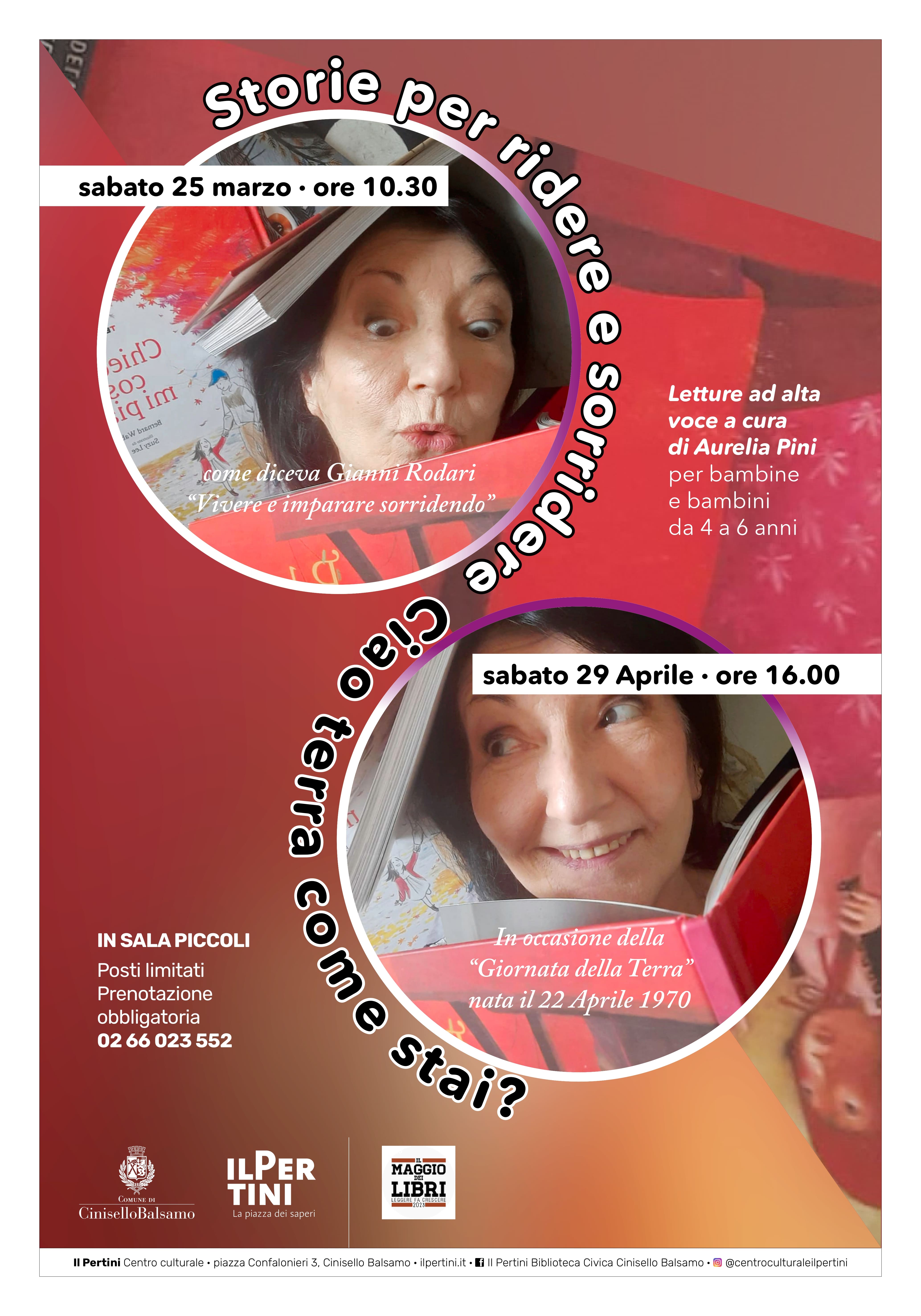 sabato 29 Aprile 2023 LETTURE ore 16:00 IL PERTINI, PIANO 1, SALA PICCOLI