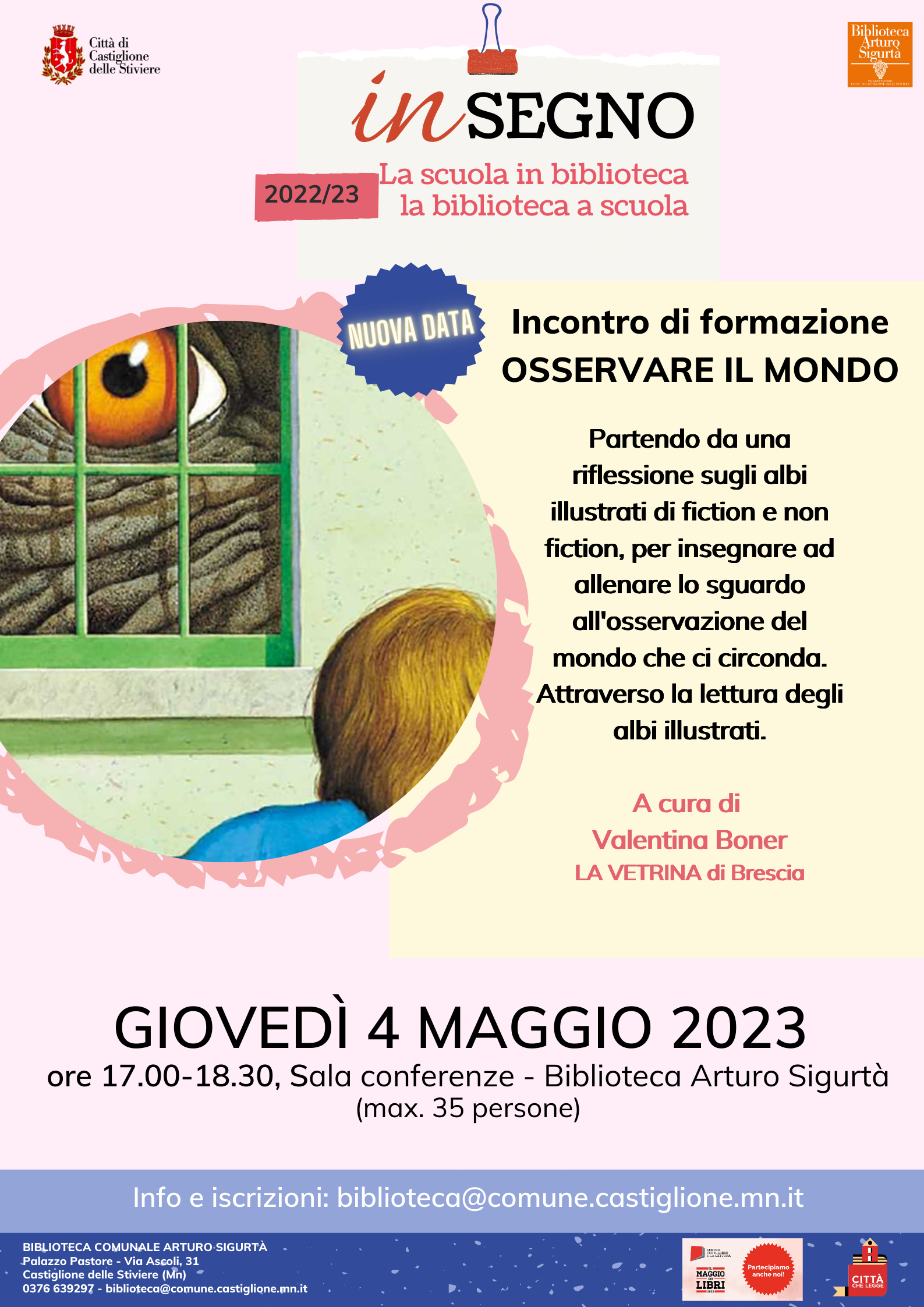 Sarà possibile seguire l'incontro anche online, ma in tutti i casi è necessaria l'iscrizione tramite mail a: biblioteca@comune.castiglione.mn.it