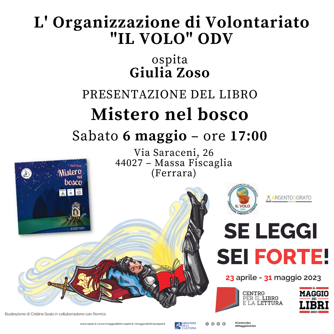 Presentazione del libro in versione inbook "Mistero nel bosco" insieme all'autrice Giulia Zoso presso la sede dell'Organizzazione "Il Volo" in via Saraceni, 26 a Massa Fiscaglia (Ferrara).