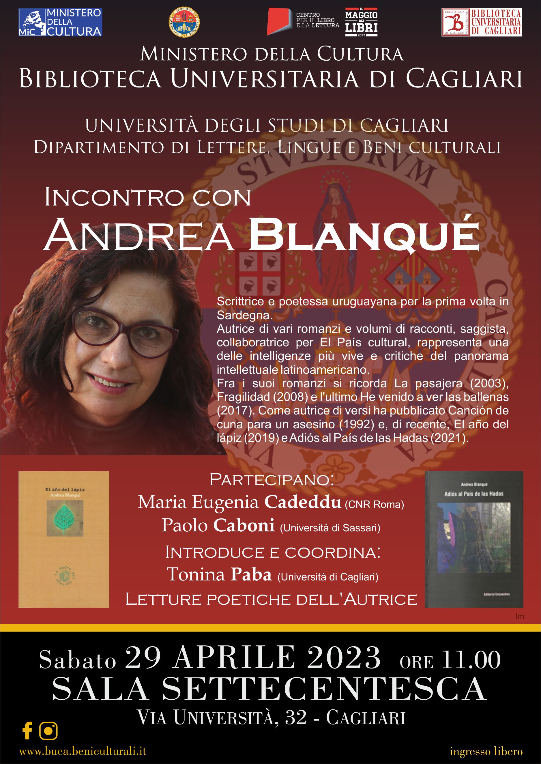Incontro con la scrittrice e poetessa uruguayana Andrea Blanqué per la prima volta in Sardegna.