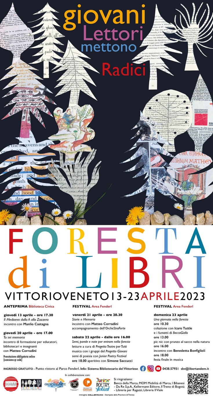 Foresta di Libri è un festival – letterario e non solo – per ragazzi e dei ragazzi. "Per" perché nasce per creare un'occasione di incontro fra lettori e scrittori, editori e insegnanti; "dei" perché è un festival dove protagonisti e registi sono i ragazzi, anzitutto quelli dei gruppi di lettura delle biblioteche del Sistema Bibliotecario del Vittoriese di cui il nostro comune fa parte. Hanno progettato il festival in ogni sfumatura. Si sono impegnati nella lettura dei libri, nella preparazione delle interviste e nell'organizzare la migliore accoglienza del pubblico e degli ospiti.