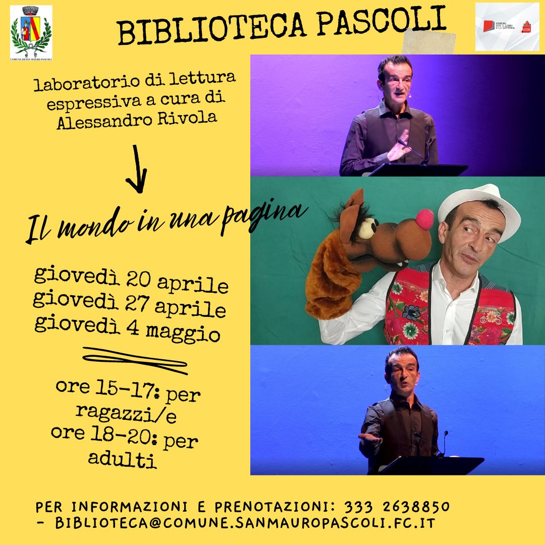 Laboratori di lettura espressiva a cura di Alessandro Rivola. Il percorso formativo si propone di individuare e sperimentare gli elementi (creativi, tecnici, relazionali) che