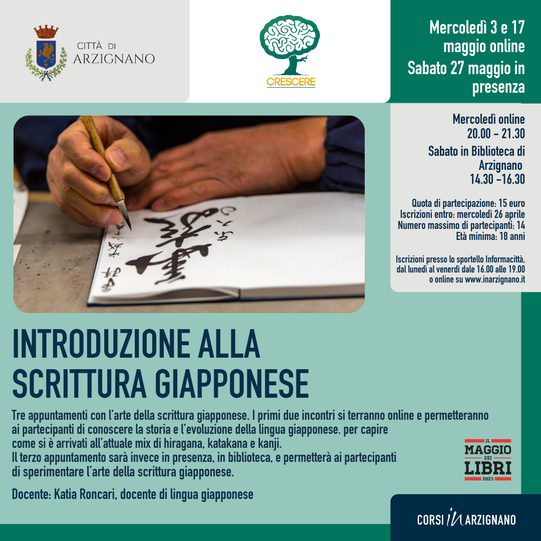 Tre appuntamenti con l’arte della scrittura giapponese. I primi due incontri si terranno online e permetteranno ai partecipanti di conoscere la storia e l’evoluzione della lingua giapponese per capire come si è arrivati all’attuale mix di hiragana, katakana e kanji. Il sistema di scrittura è il risultato di influenze provenienti da diversi ambiti, perciò è un ottimo veicolo per avvicinarsi a questa cultura che appare spesso molto diversa dalla nostra. Il terzo appuntamento sarà invece in presenza, in biblioteca, e permetterà ai partecipanti di sperimentare l’arte della scrittura giapponese.