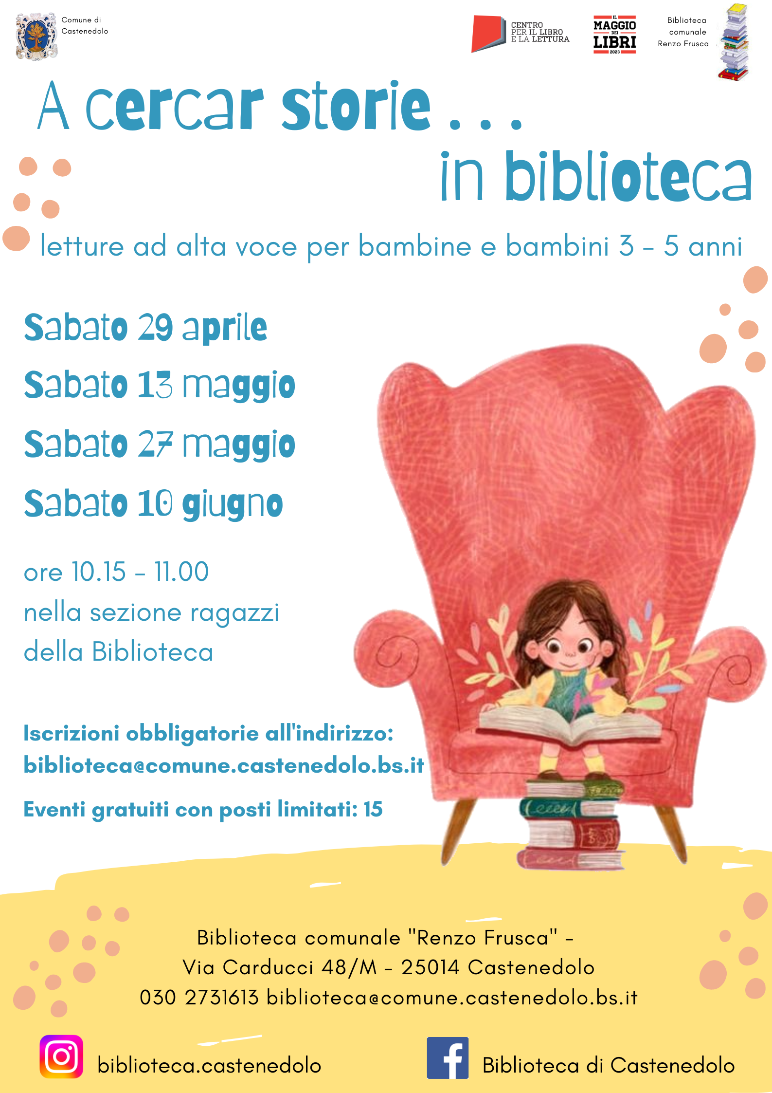 Letture ad alta voce per bambine e bambini dai 3 ai 5 anni Iscrizioni obbligatorie all'indirizzo: biblioteca@comune.castenedolo.bs.it