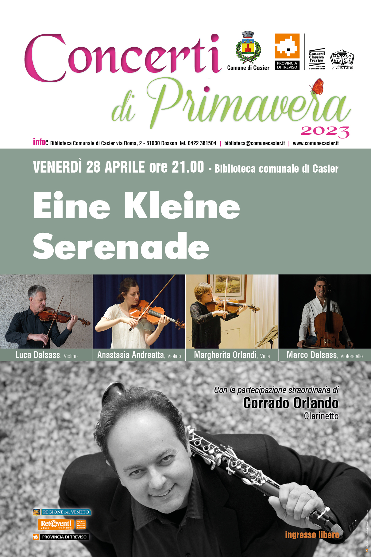 Terzo appuntamento della rassegna musicale "Concerti di Primavera" nel Comune di Casier, eseguito da quartetto d'archi e clarinetto.