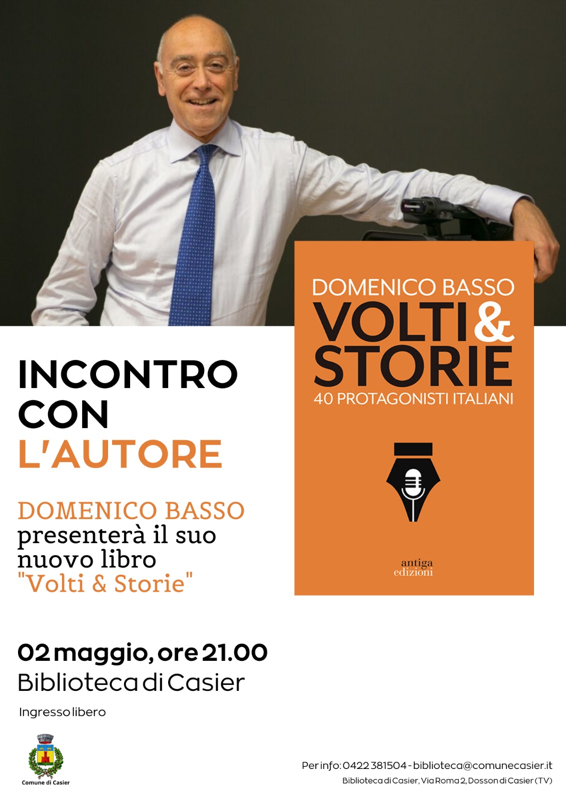 Presentazione di "Volti e storie" del giornalista televisivo Domenico Basso. Racconti, aneddoti e curiosità riguardo personalità di spicco dello sport, dello spettacolo e della politica.