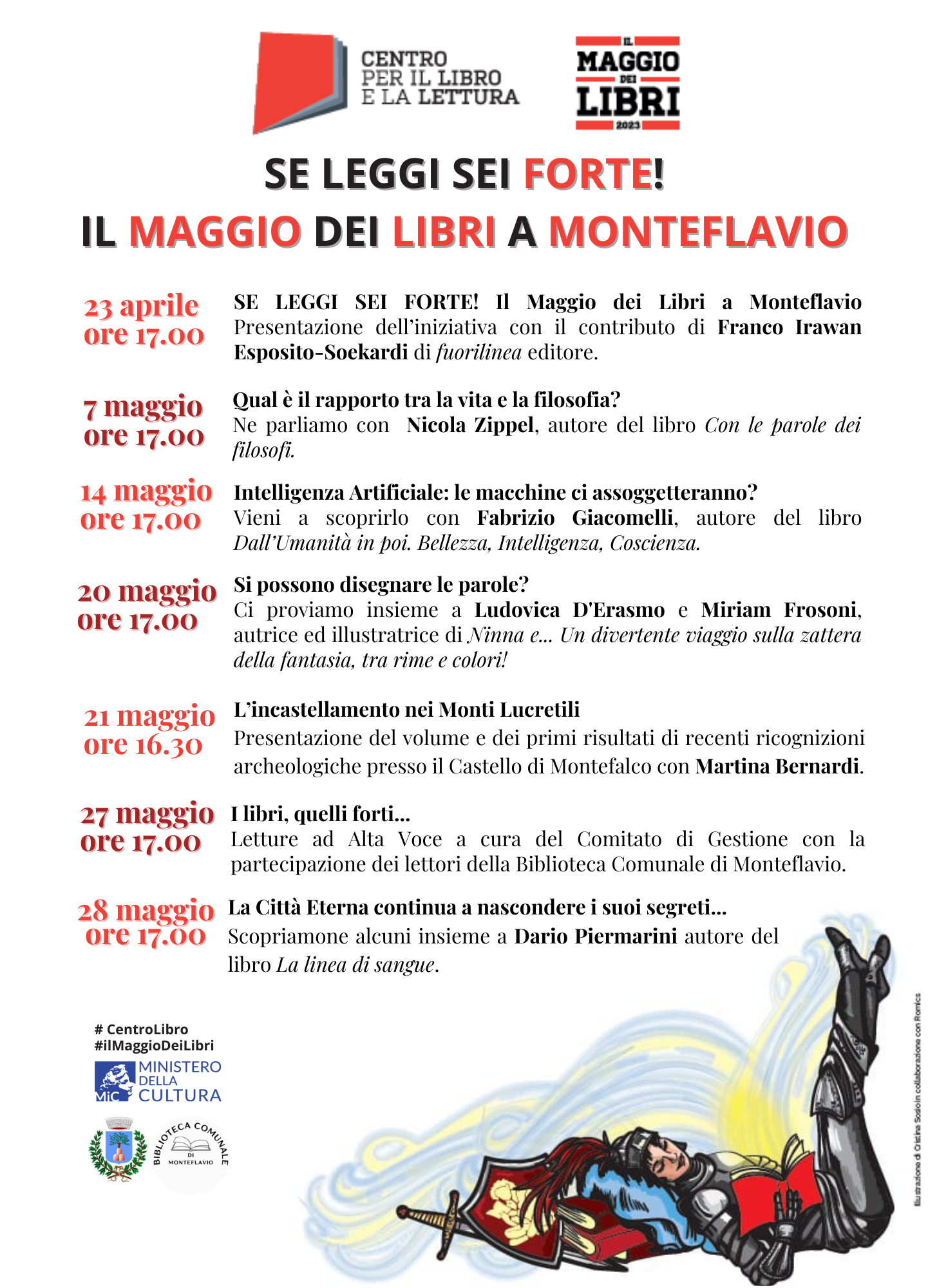 Il Maggio dei Libri a Monteflavio", che prevede vari appuntamenti dedicati ad incontri con autrici,, autori, illustratrici, editori, ricercatrici, esperti, animazioni per bambini e ragazzi, presentazioni e letture ad Alta Voce.