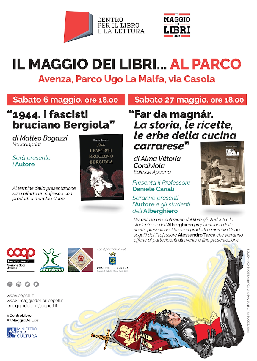 Sabato 27 maggio alle ore 18:00, presentazione del libro "Far da magnàr. La storia, le ricette, le erbe della cucina carrarese" di Alma Vittoria Cordiviola. Presenta il professore Daniele Canali. Saranno presenti l'autore e gli studenti dell'Alberghiero, che prepareranno delle ricette del libro con prodotti a marchio Coop, seguiti dal professor Alessandro Tarca.