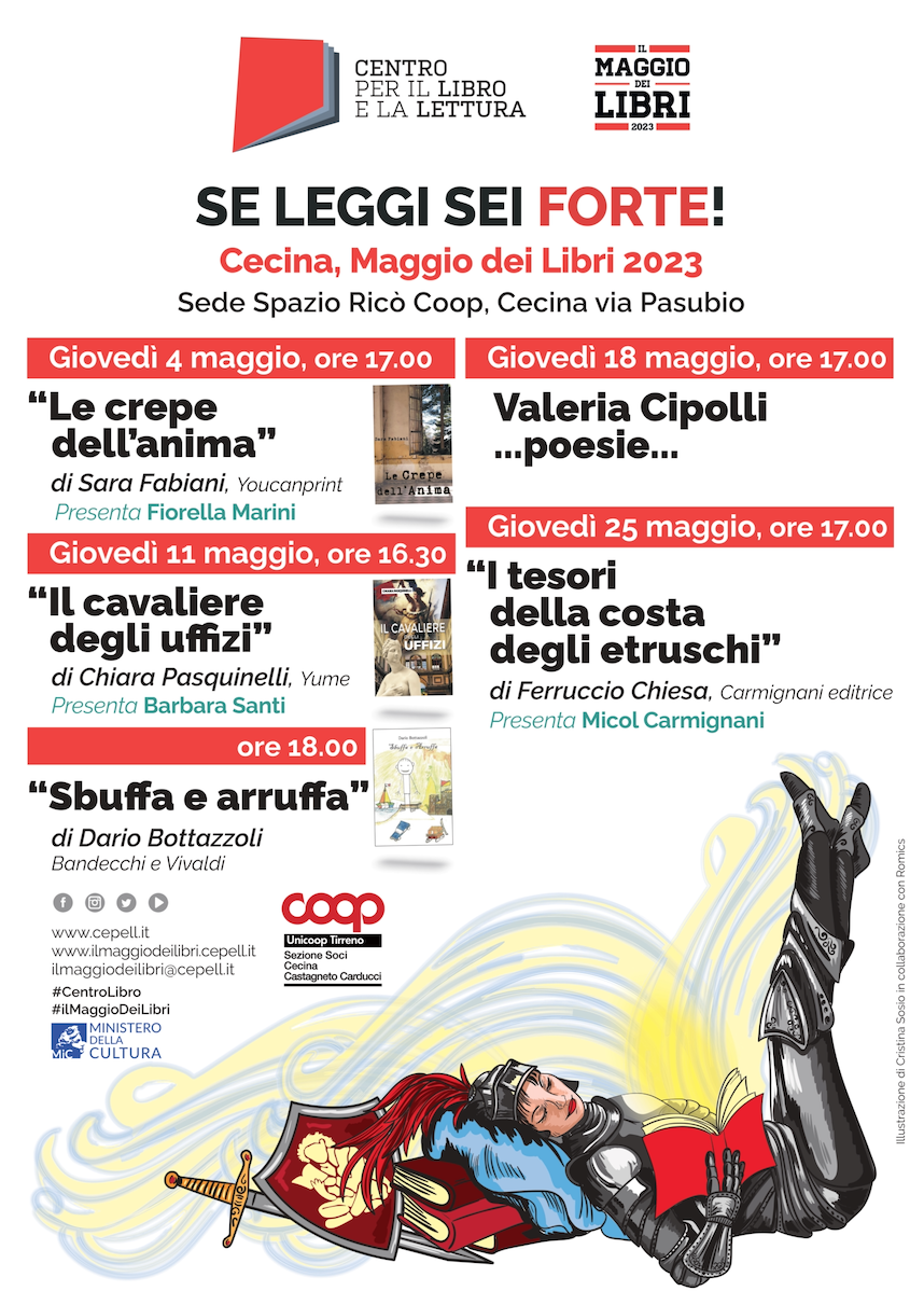 Cecina partecipa al Maggio dei Libri 2023 con cinque presentazioni che si terranno presso la Sede Spazio Ricò Coop di via Pasubio.