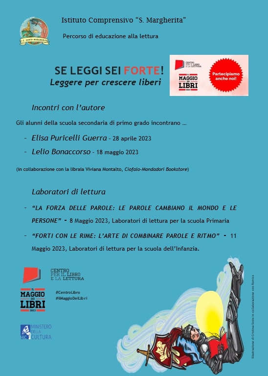 In continuità con la partecipazione alle edizioni 2021 e 2022 del Maggio dei Libri e alle campagne nazionali di promozione della lettura #ioleggoperché del 2021 e del 2022, l’Istituto Comprensivo "Santa Margherita" di Messina, in collaborazione con Viviana Montalto della libreria Ciofalo-Mondadori Bookstore, ha programmato nei mesi di aprile e di maggio 2023 le seguenti attività: