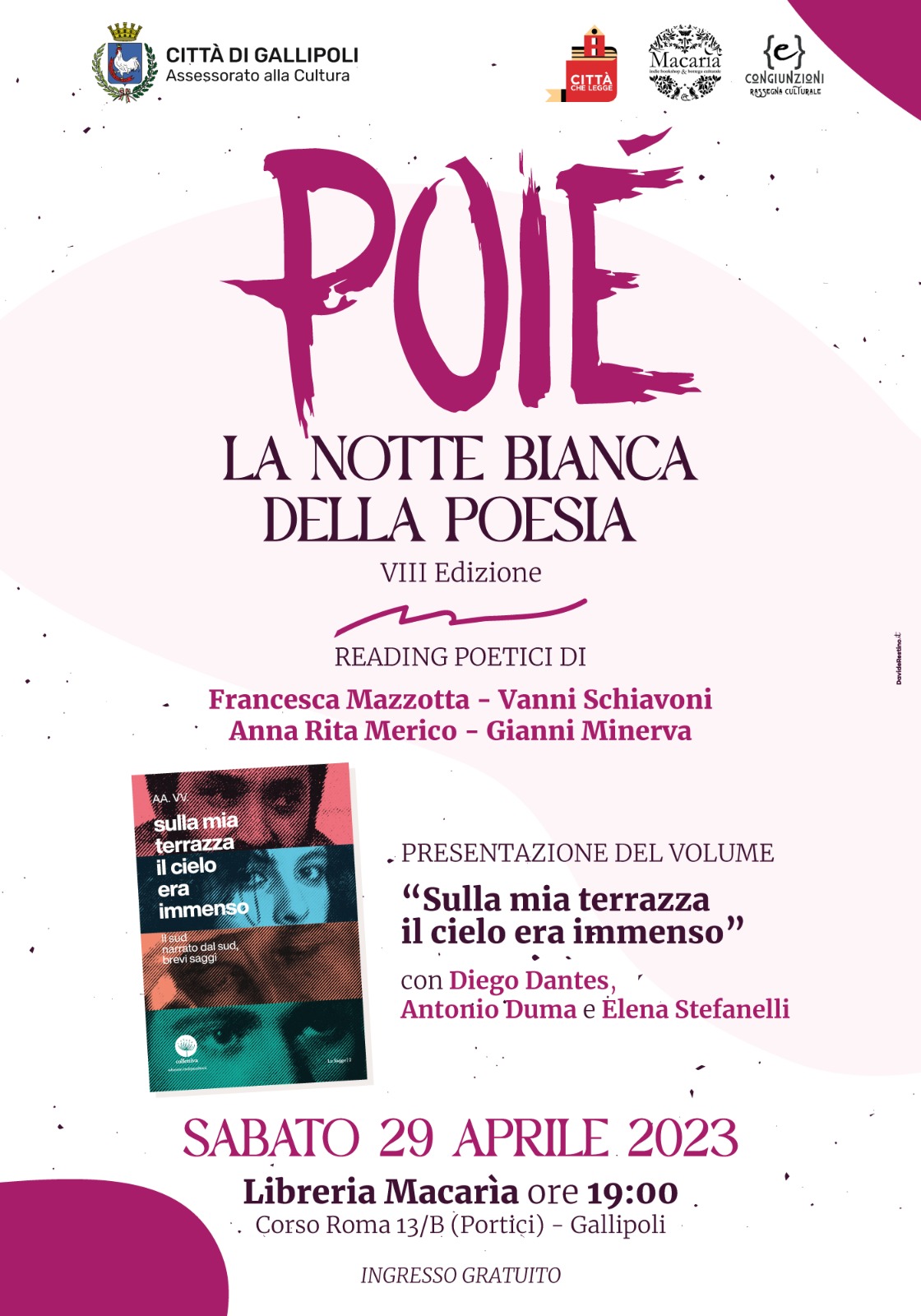 Il libro. Tra queste pagine il Sud inganna i decenni, intreccia visioni ed esperienze e si spinge ben oltre la linearità che siamo soliti attribuire al tempo che passa. Più che un passaggio di testimone, allora, “Sulla mia terrazza il cielo era immenso” consente un dialogo creativo che arricchisce chi lo legge quanto chi ne è artefice.