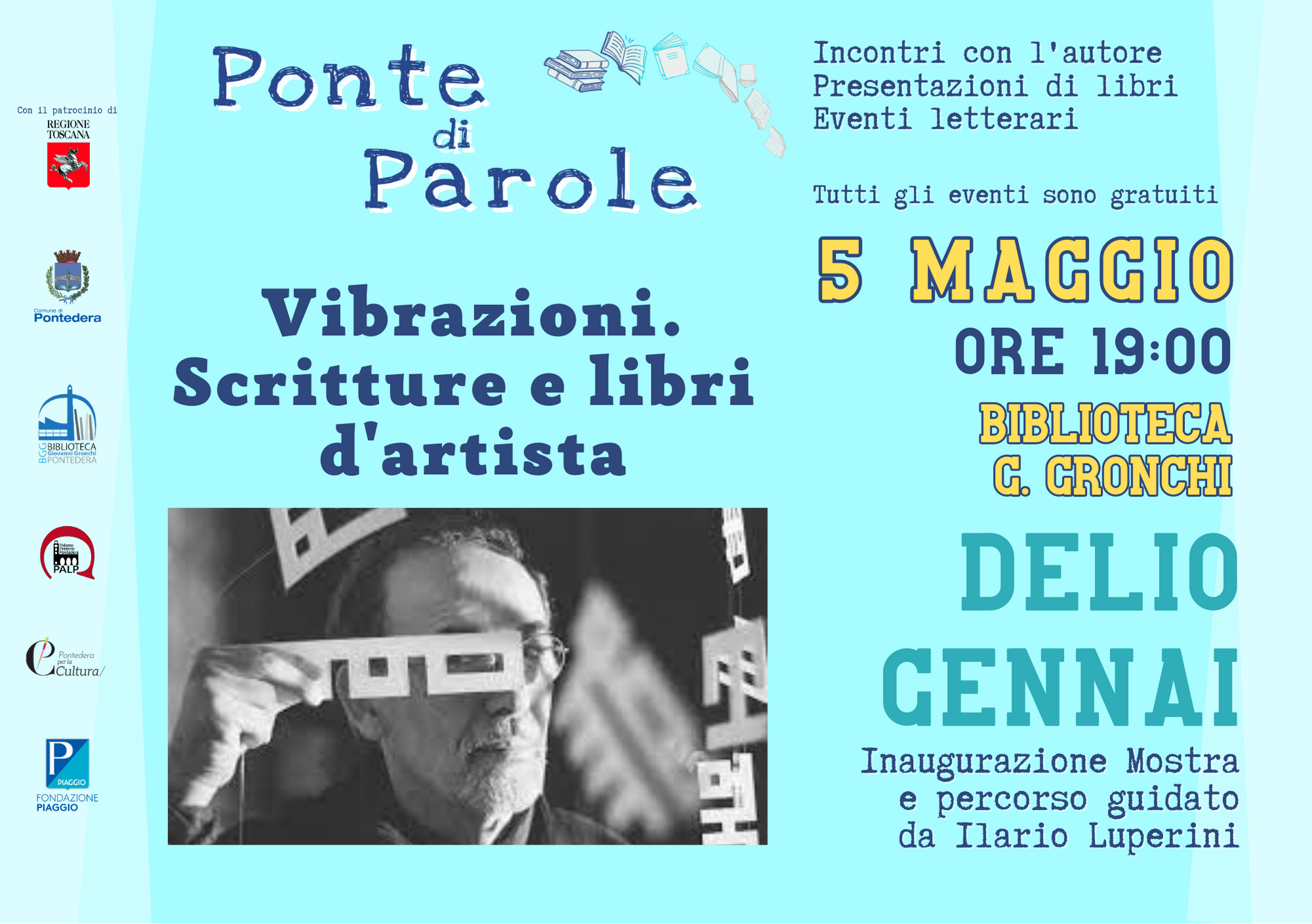 Venerdì 5 maggio alle ore 19:00, nel corso del Festival letterario "Ponte di Parole", alla Biblioteca G. Gronchi si inaugura la Mostra "Delio Gennai. Vibrazioni: Scritture e libri d'artista", a cura di Francesca Pepi.