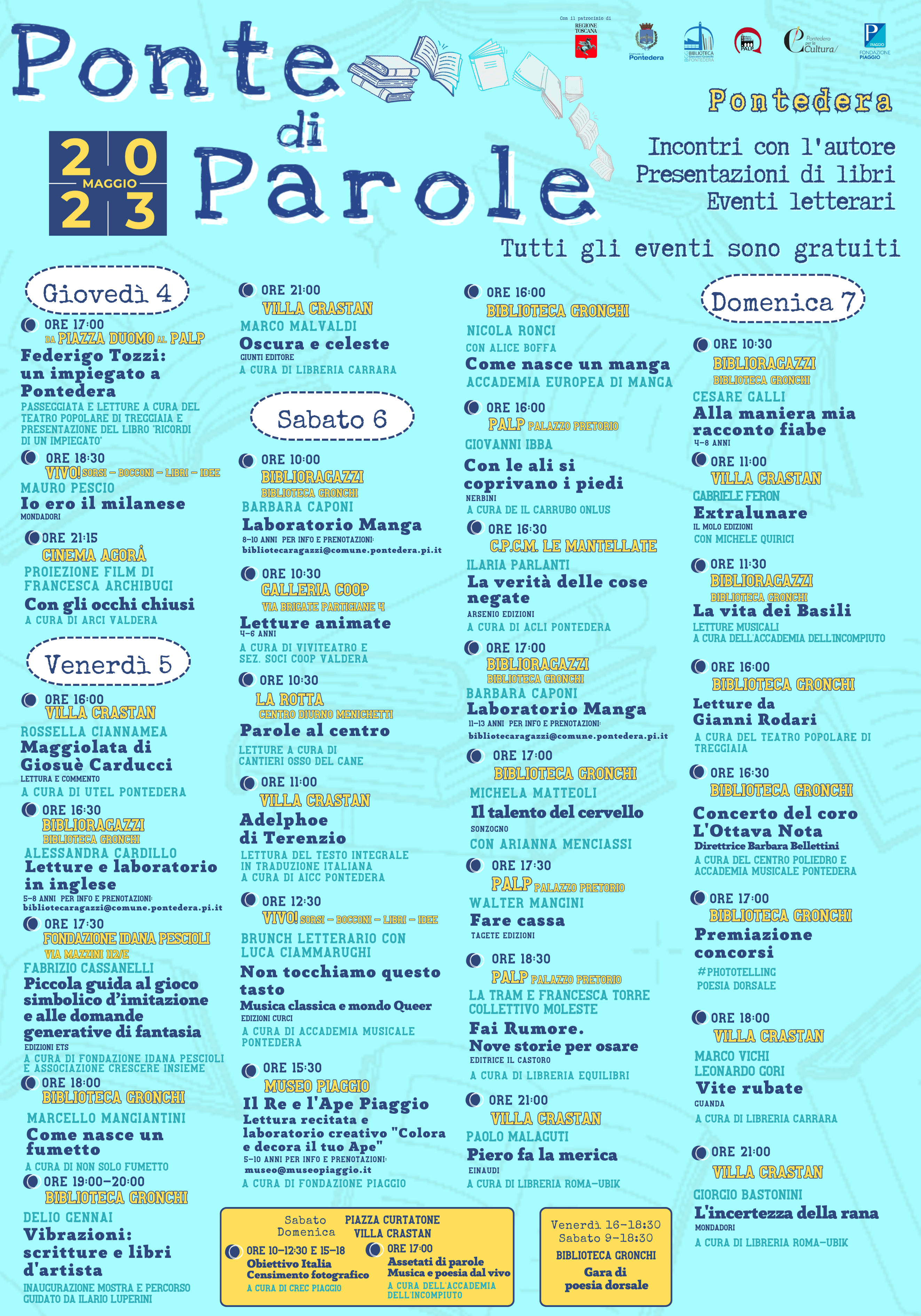 Domenica 7 maggio alle ore 16:00, nel corso del festival letterario Ponte di Parole, la Biblioteca dei Ragazzi G. Gronchi ospiterà delle Letture dai testi di Gianni Rodari a cura del Teatro Popolare di Treggiaia.