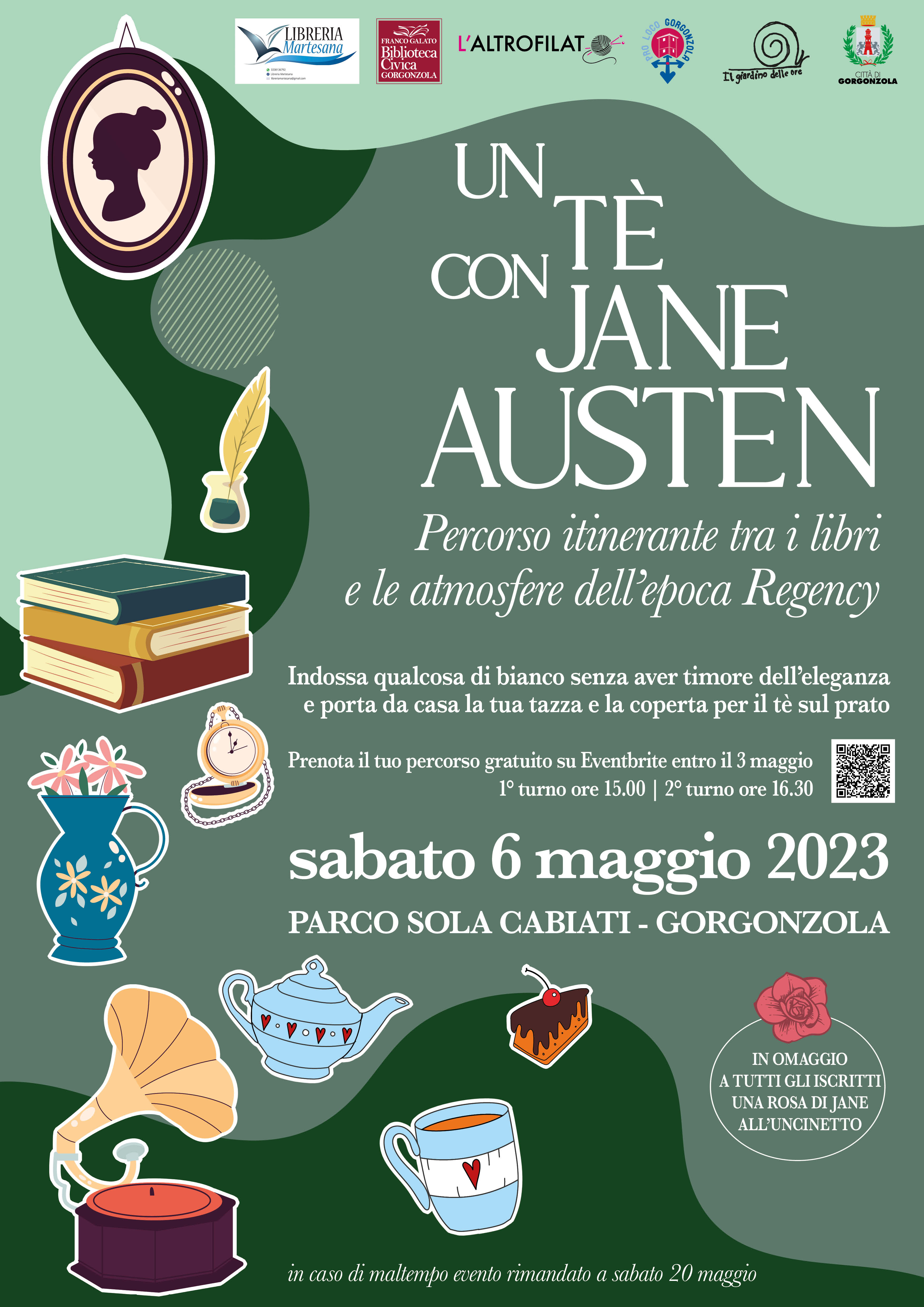 Immergiti per un pomeriggio nell’atmosfera inglese di inizio Ottocento tra balli, matrimoni combinati, amori sospirati e status sociale, il tutto condito con generose dosi di pettegolezzi. Rivivi le emozioni raccontate nelle pagine dei più celebri romanzi di Jane Austen in un percorso di letture teatralizzate nella suggestiva cornice del giardino storico di Gorgonzola Parco Sola Cabiati. Riscopri Jane Austen come autrice femminista attraverso il suo stile capace di coniugare un’acuta capacità di osservazione e analisi dei dettagli a una sottile ma costante ironia, per smascherare ingiustizie sociali attraverso figure femminili protagoniste di commedie domestiche e romantiche con un forte desiderio di indipendenza.