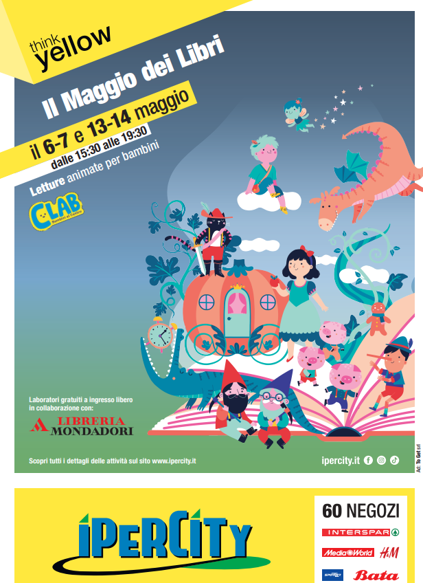 I primi due weekend di maggio verranno organizzate delle letture animate presso la piazza centrale del Centro Commerciale Ipercity, in collaborazione con la libreria Mondadori.