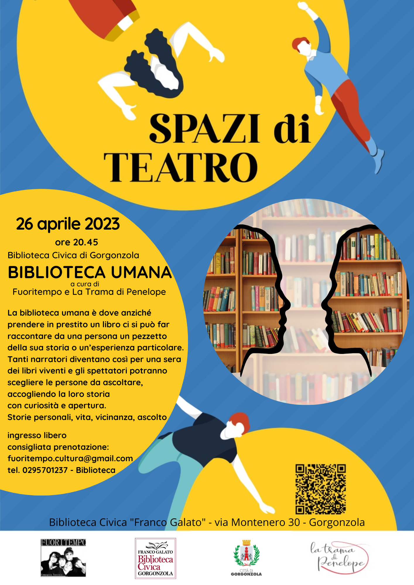 La biblioteca umana è un tipo di biblioteca dove anziché prendere in prestito un libro ci si può far raccontare da una persona la sua storia. Tanti narratori diventano così per una sera dei libri viventi e gli spettatori potranno scegliere le persone da ascoltare, accogliendo la loro storia senza pregiudizi ma con curiosità e apertura.