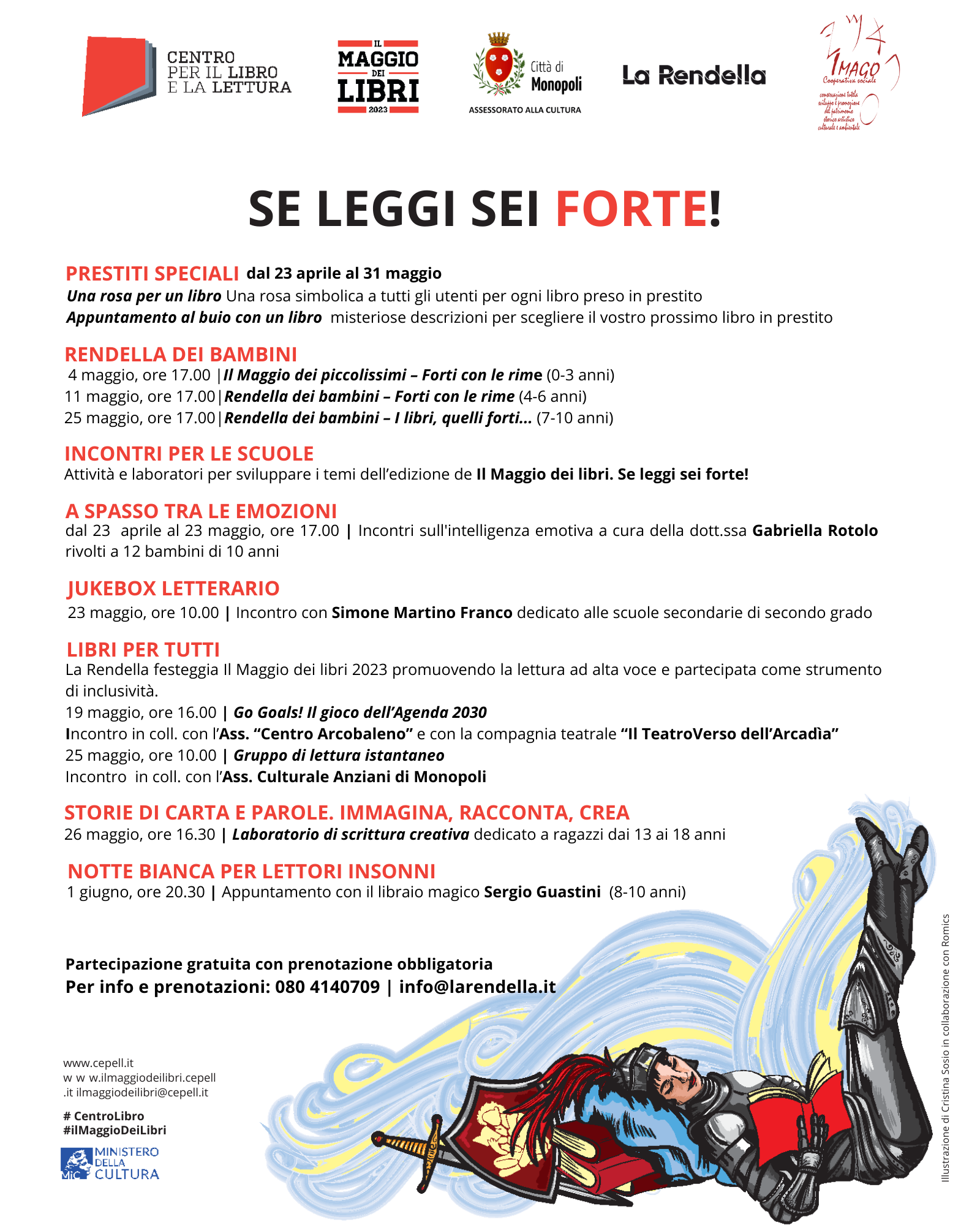 Seguendo l'antica tradizione catalana dello scambio di una rosa per un libro, in occasione della celebrazione di San Giorgio del 23 aprile, data che coincide con la Giornata mondiale del libro e del diritto d’autore, la Biblioteca Rendella donerà una rosa simbolica a tutti gli utenti per ogni libro preso in prestito per tutta la durata dell'iniziativa.