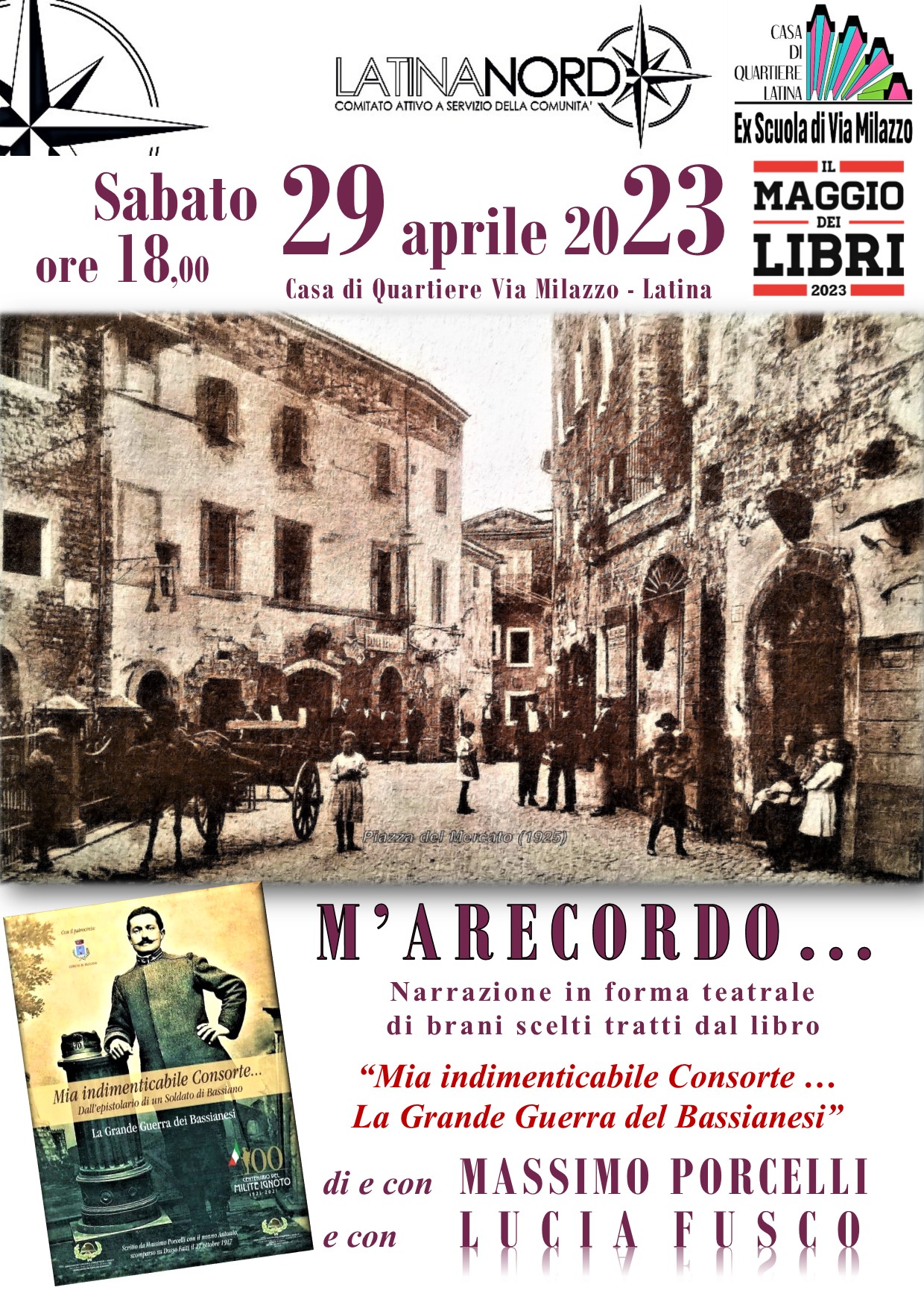 M'ARECORDO ... è la narrazione in forma teatrale di brani scelti tratti dal libro "Mia indimenticabile Consorte ... La Grande Guerra dei Bassianesi" che ripercorre le vicende della Comunità bassianese che vive tra il paese e la Palude pontina - dalla vigilia del drammatico conflitto mondiale al suo epilogo.