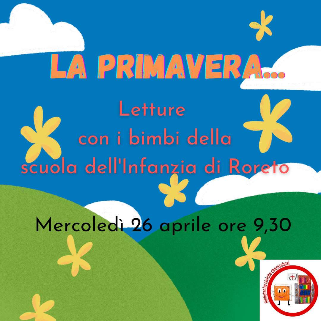Lettura animata sulla primavera presso la Scuola dell'Infanzia della frazione Roreto di Cherasco svolta dalle bibliotecarie e dedicata ai bambini della scuola.