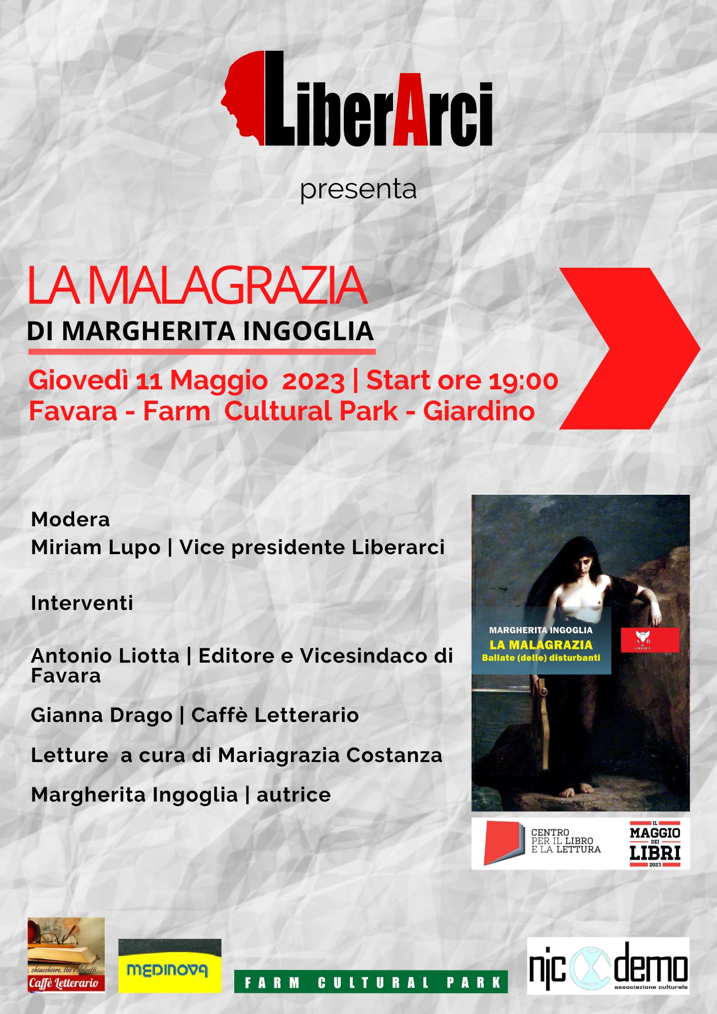Giovedì 11 maggio, alle ore 19, presso la Farm Cultural Park Favara, sarà presentato il libro “La malagrazia. Ballate (delle) disturbanti” (A&B editrice) di Margherita Ingoglia.