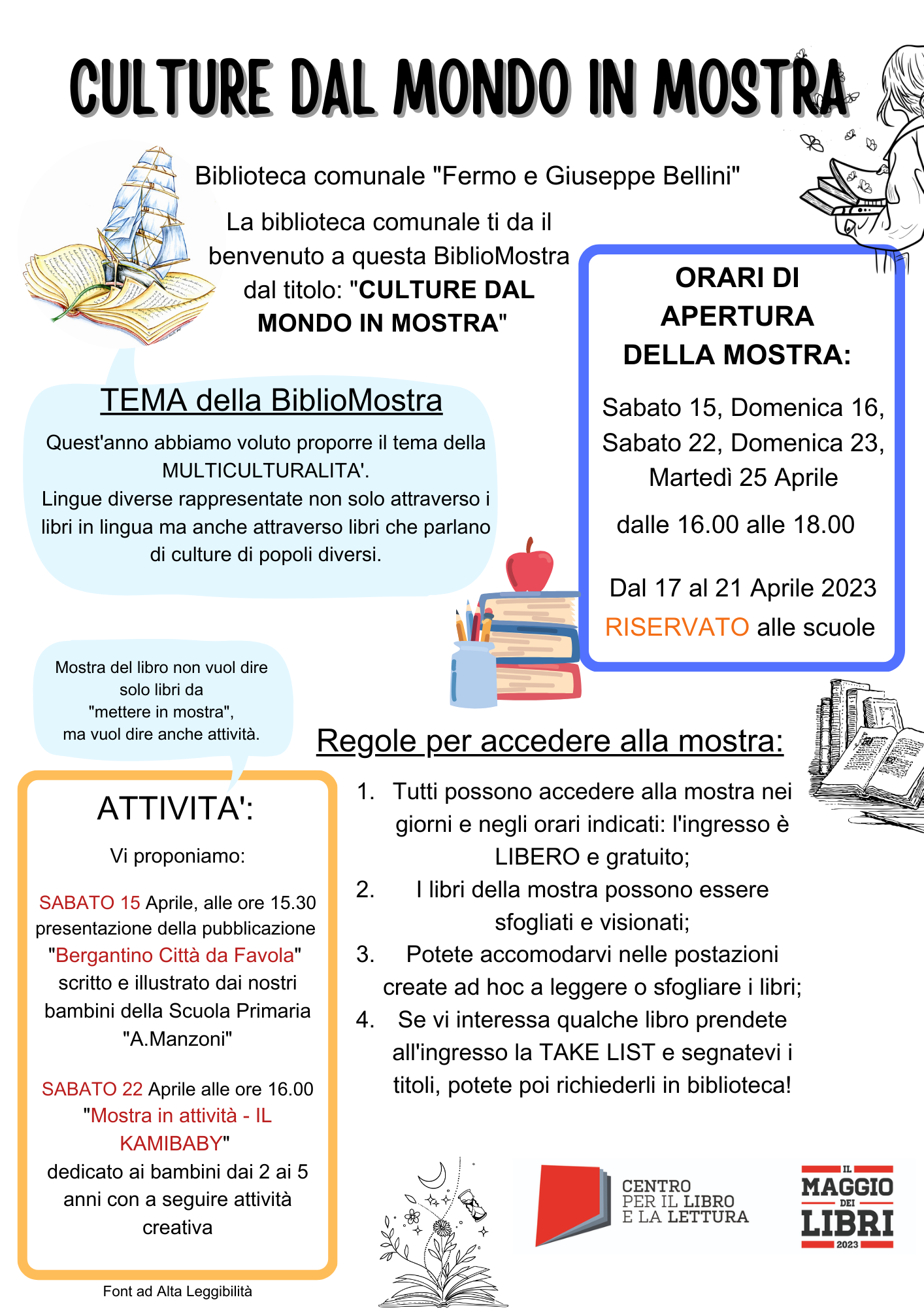 La biblioteca di Bergantino ha organizzato una Mostra del Libro a tema Multiculturalità. Lo scopo della mostra era quello di mettere in mostra una particolare