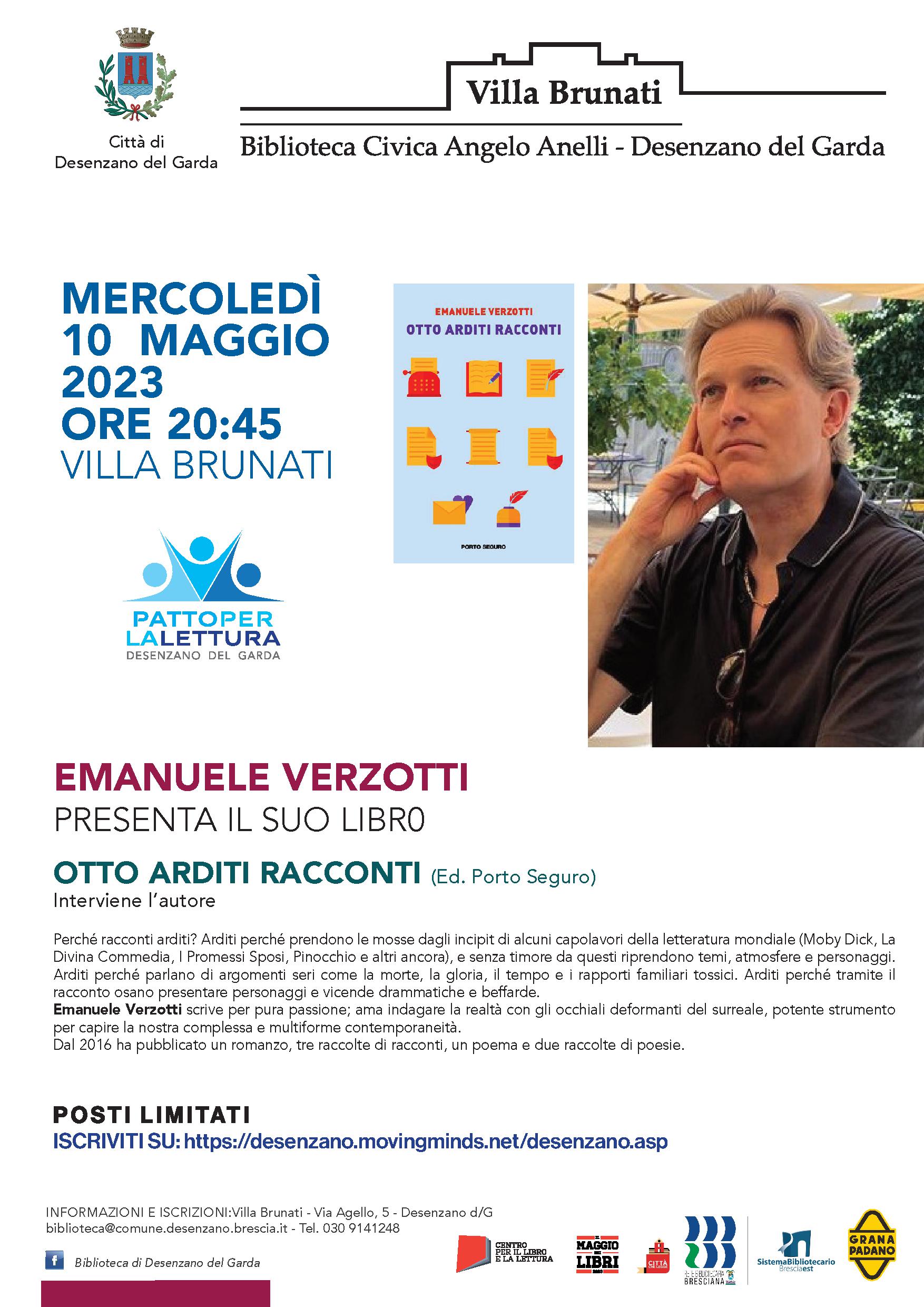 MERCOLEDÌ 10 MAGGIO 2023, ORE 20:45 PRESENTAZIONE DEL LIBRO EMANUELE VERZOTTI OTTO ARDITI RACCONTI (Ed. Porto Seguro) Interviene l’autore