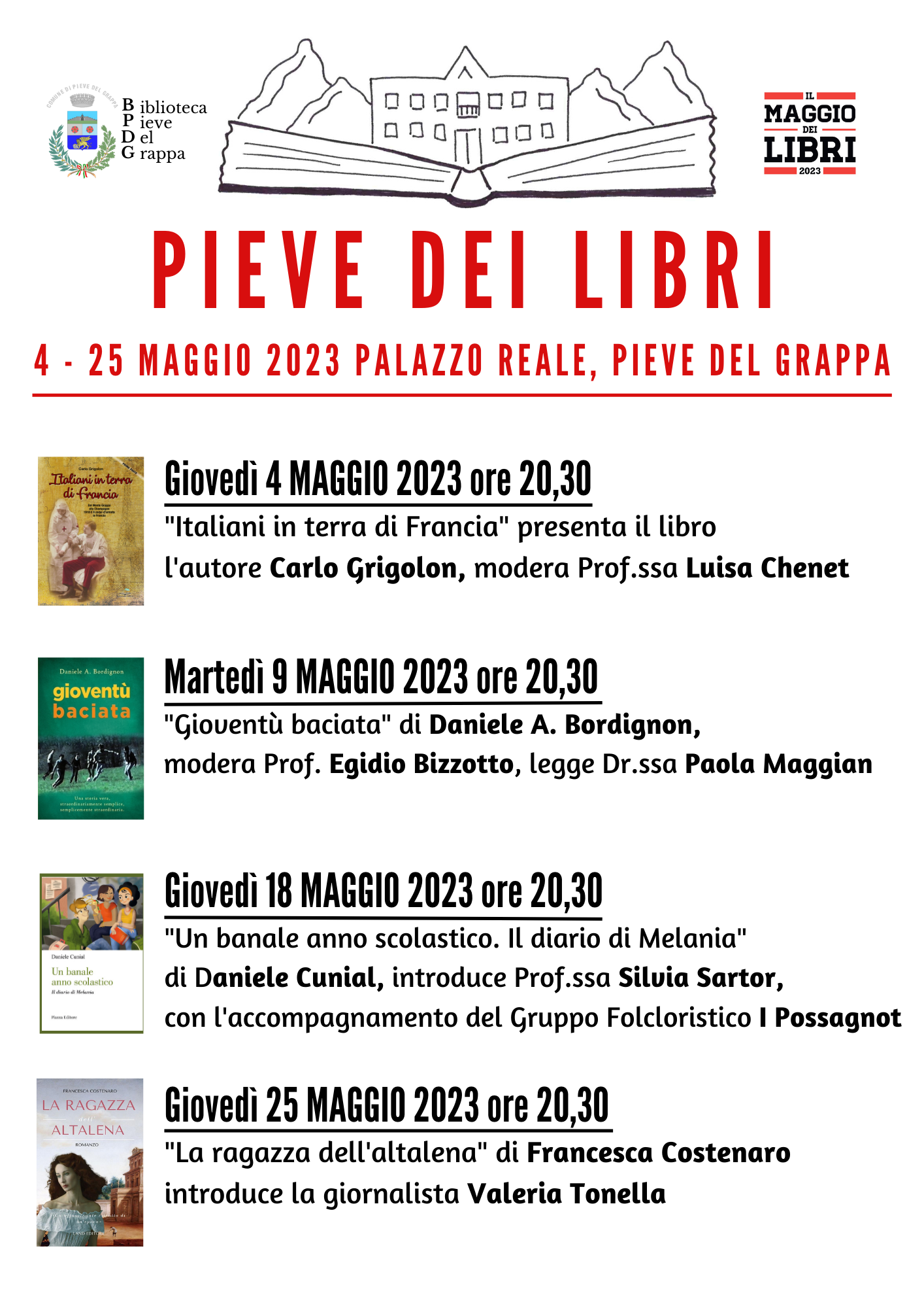 La biblioteca di Pieve del Grappa propone una rassegna di autori locali a Palazzo Reale - Pieve del Grappa dal 4 al 25 maggio 2023: