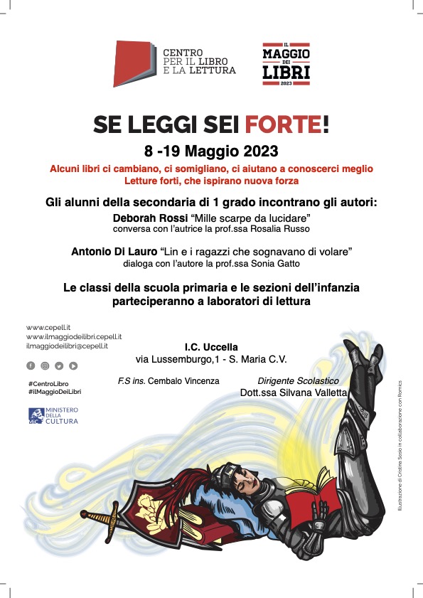 Gli alunni della scuola secondaria di 1 grado incontreranno gli autori: Deborah Rossi, autrice di "Mille scarpe da lucidare", e Antonio Di Lauro che presenta il suo romanzo "Lin e i ragazzi che sognano volare. Entrambi si ispirano a fatti realmente accaduti ed attraverso i fatti e le parole ispirano una forza nuova capace di conoscere meglio se stessi e gli altri. Le classi della scuola primaria e le sezioni della scuola dell'infanzia parteciperanno a laboratori di lettura a voce alta nella biblioteca scolastica.