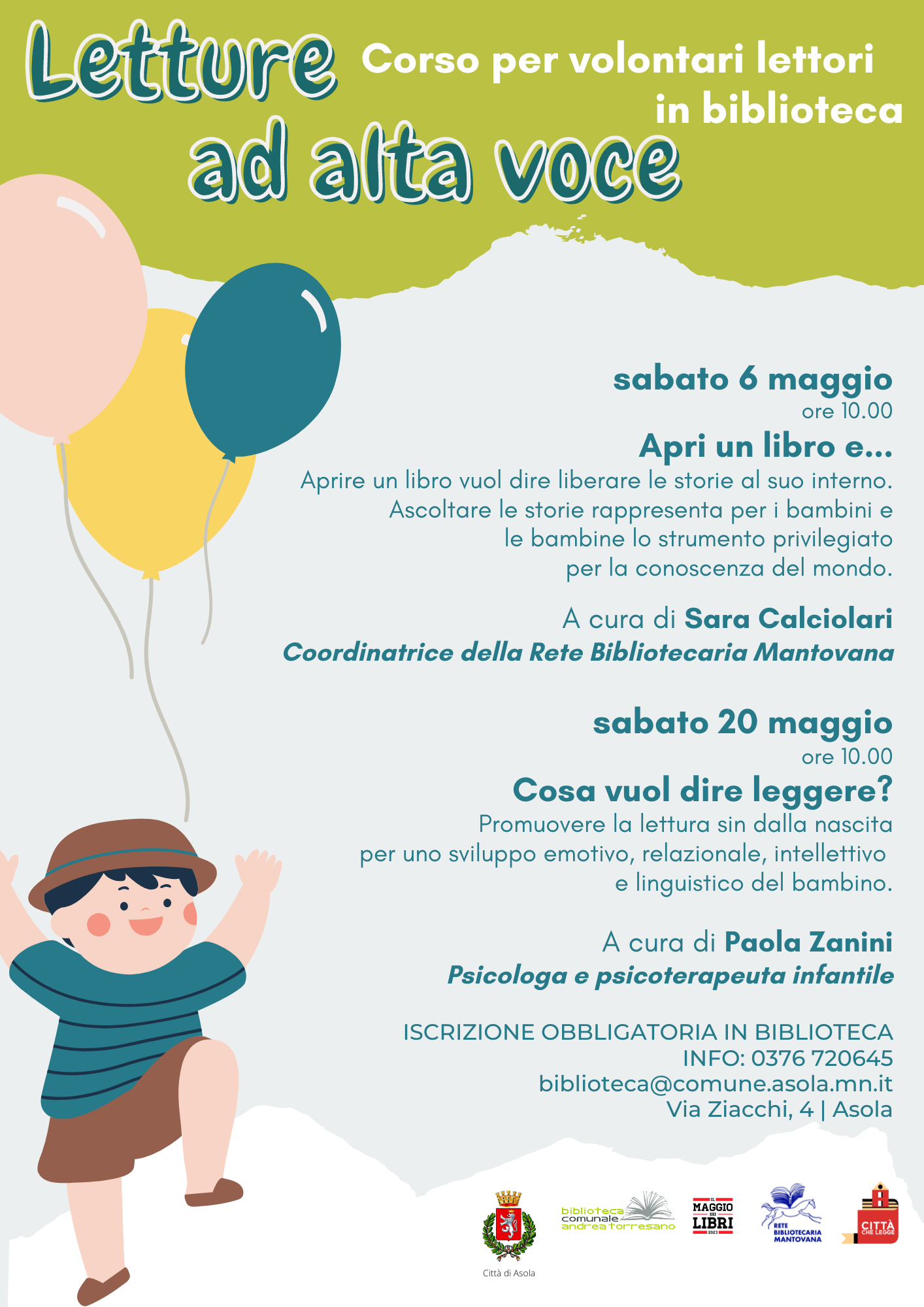 Si tratta di un piccolo "corso di formazione" di due incontri rivolto a chi già presta il suo tempo come lettore volontario attivo presso la nostra biblioteca ma anche a educatori, insegnanti e genitori. Gli incontri dureranno circa 1 h e 30 e saranno tenuti da Sara Calciolari, coordinatrice RBM, e dalla psicologa e psicoterapeuta infantile Paola Zanini.