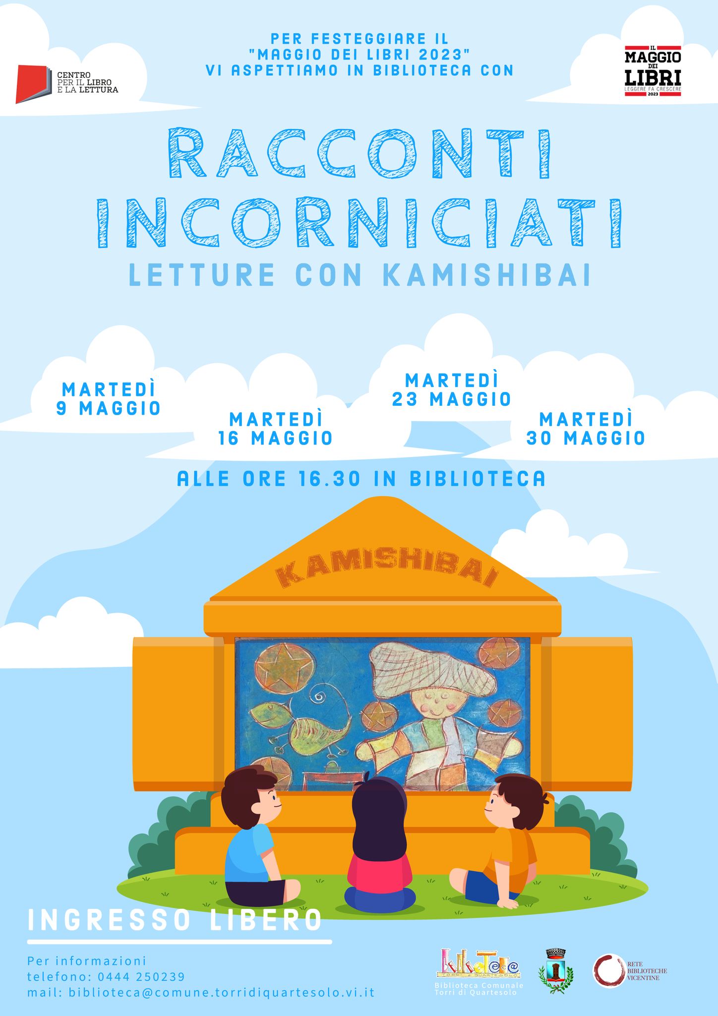 Fantasia, immaginazione, stupore, magia, emozioni... Tutto ciò racchiuso all'interno di un piccolo teatrino di legno dove le storie prendono vita! Vi abbiamo incuriosito? Si? Vi aspettiamo allora martedì 9, 16, 23, 30 maggio ore 16.30 in biblioteca, per assistere a delle meravigliose letture animate con kamishibai! INGRESSO LIBERO