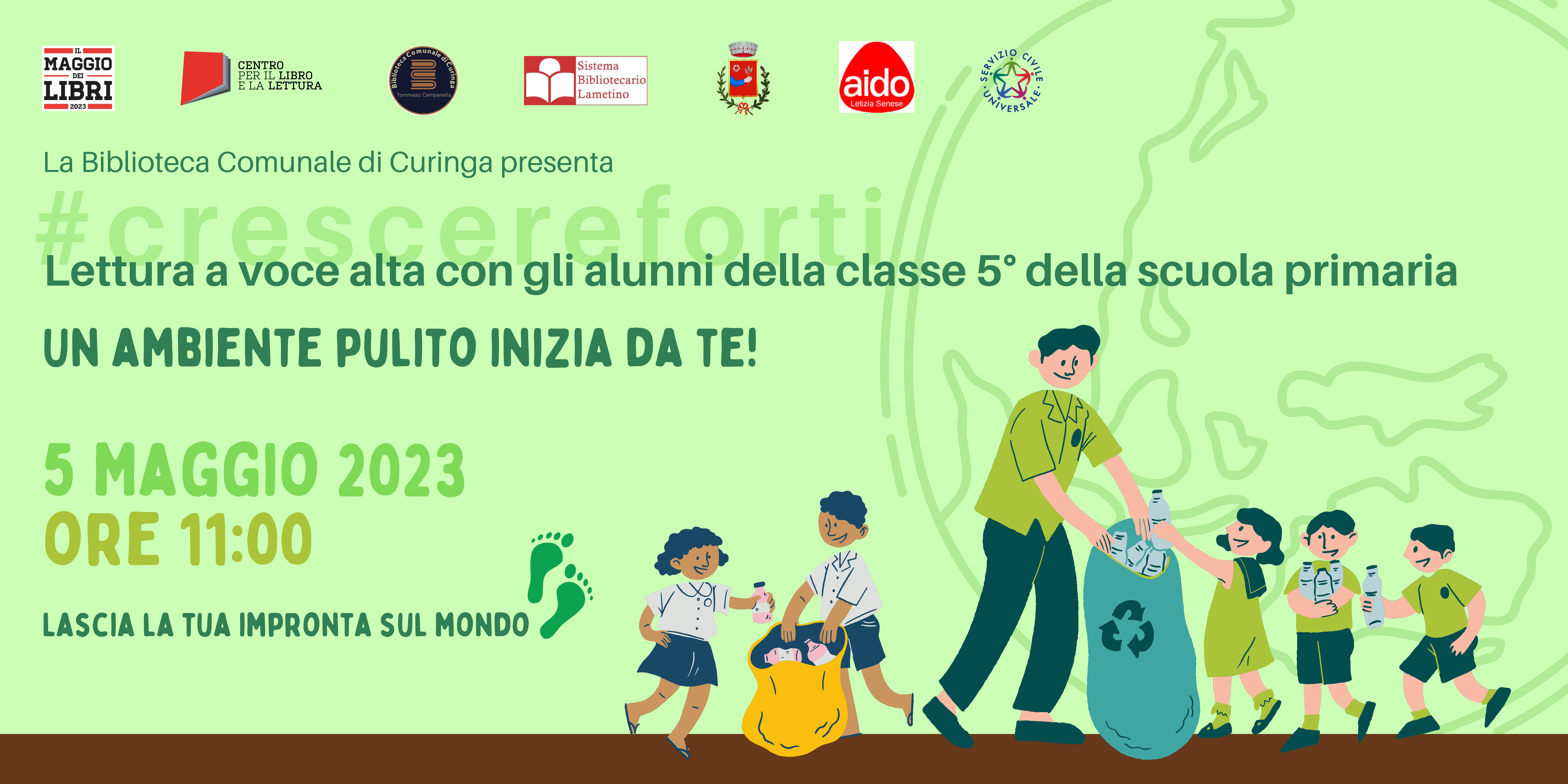 Lettura ad alta voce con gli alunni della classe quinta della scuola primaria. L'intento è quello di sensibilizzare i bambini sul tema dell'ambiente e dell'inquinamento ambientale, utilizzando metodi alternativi a quelli scolastici e coinvolgendoli attivamente invitandoli a partecipare. Il libro che andremo a leggere è "Piantala, Riciclaudio! come coltivare abitudini ecologiche e combattere i cambiamenti climatici". Al termine dell'attività didattica saranno donati ai bambini dei semini da piantare.