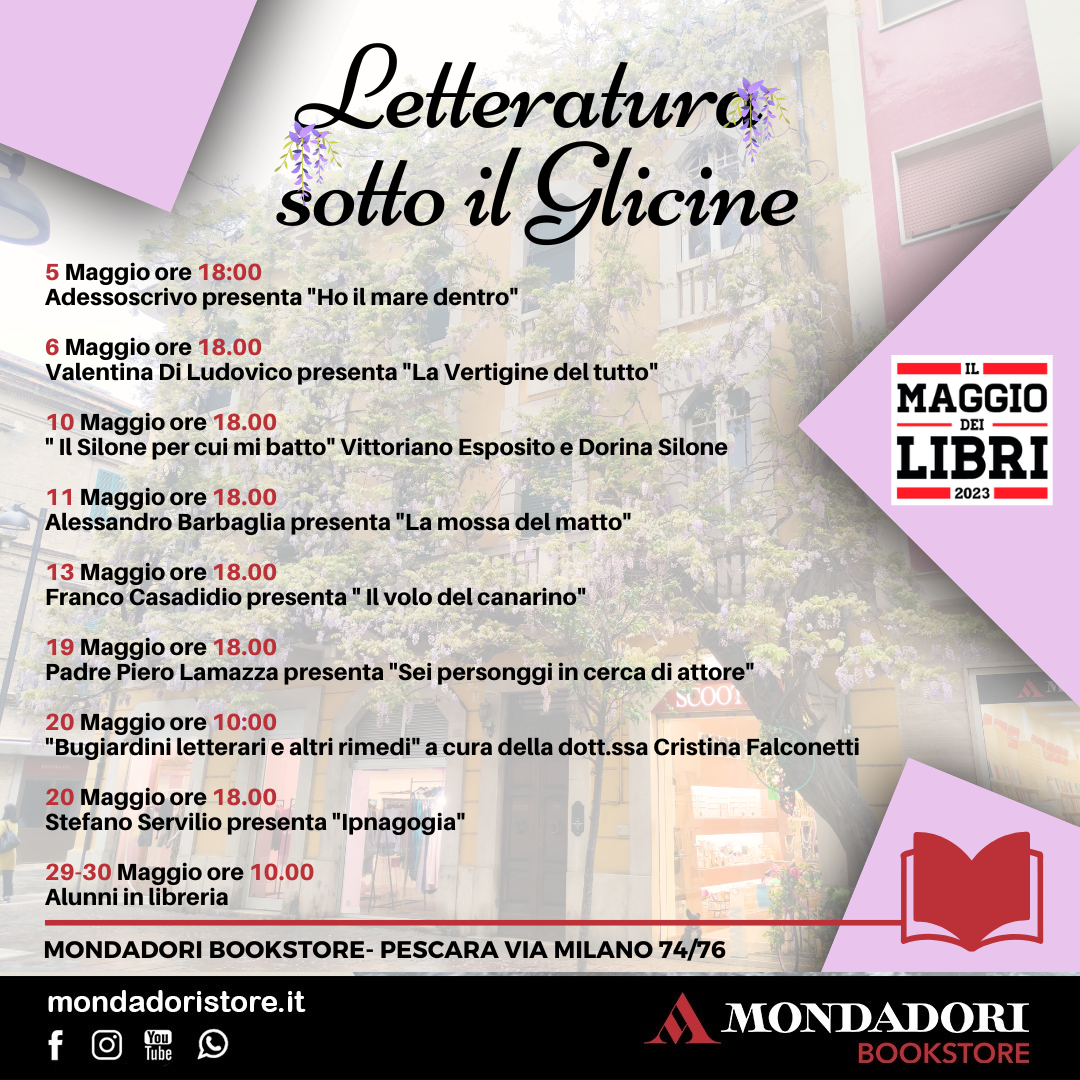 "In un mondo più giusto, io e te ora saremo seduti lì a guardarci negli occhi, sotto il glicine in fiore, a sorridere di niente" 10 incontri di presentazioni ed eventi, sotto la cornice del nostro glicine.