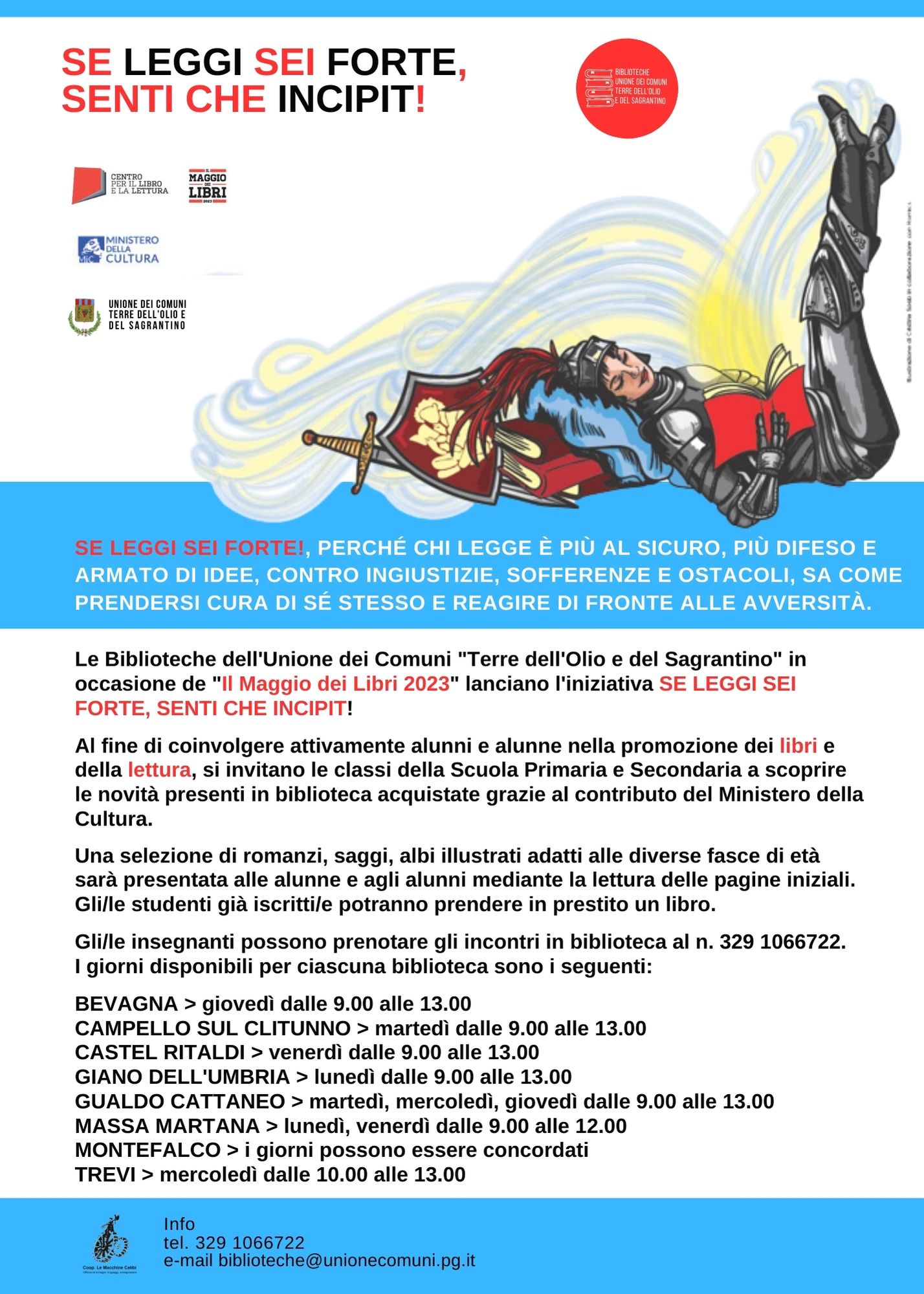 Le Biblioteche dell'Unione dei Comuni "Terre dell'Olio e del Sagrantino" in occasione de "Il Maggio dei Libri 2023" lanciano l'iniziativa