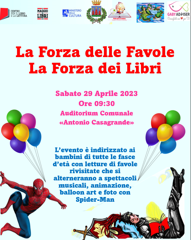 L'evento è indirizzato ai bambini di tutte le fasce d'età con letture di favole rivisitate che si alterneranno a spettacoli musicali, animazione, balloon art e foto con Spider-Man.