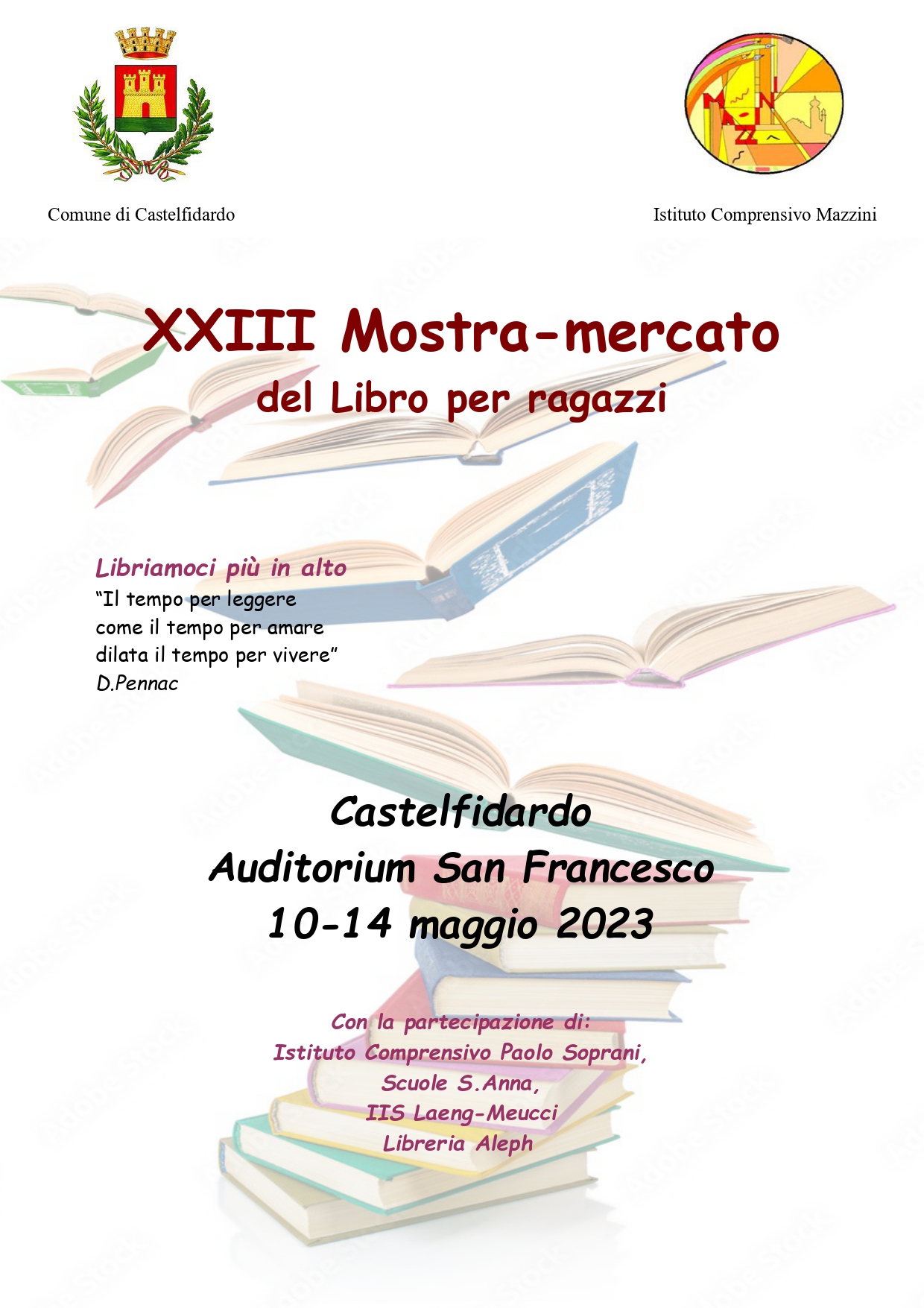 La Mostra del libro per ragazzi mette insieme i lavori sulla lettura e sull'ambiente fatti dalle classi di tutte le scuole di Castelfidardo. Coordinato dall'Istituto Comprensivo Mazzini, l'allestimento rende fruibili i progetti degli alunni delle scuole dall'infanzia alla media di secondo grado, offrendo al centro una scelta di volumi da poter acquistare, per incrementare il livello di cultura dei più giovani. Nel programma della mostra anche letture e presentazioni di libri con lettori esperti ed autori.