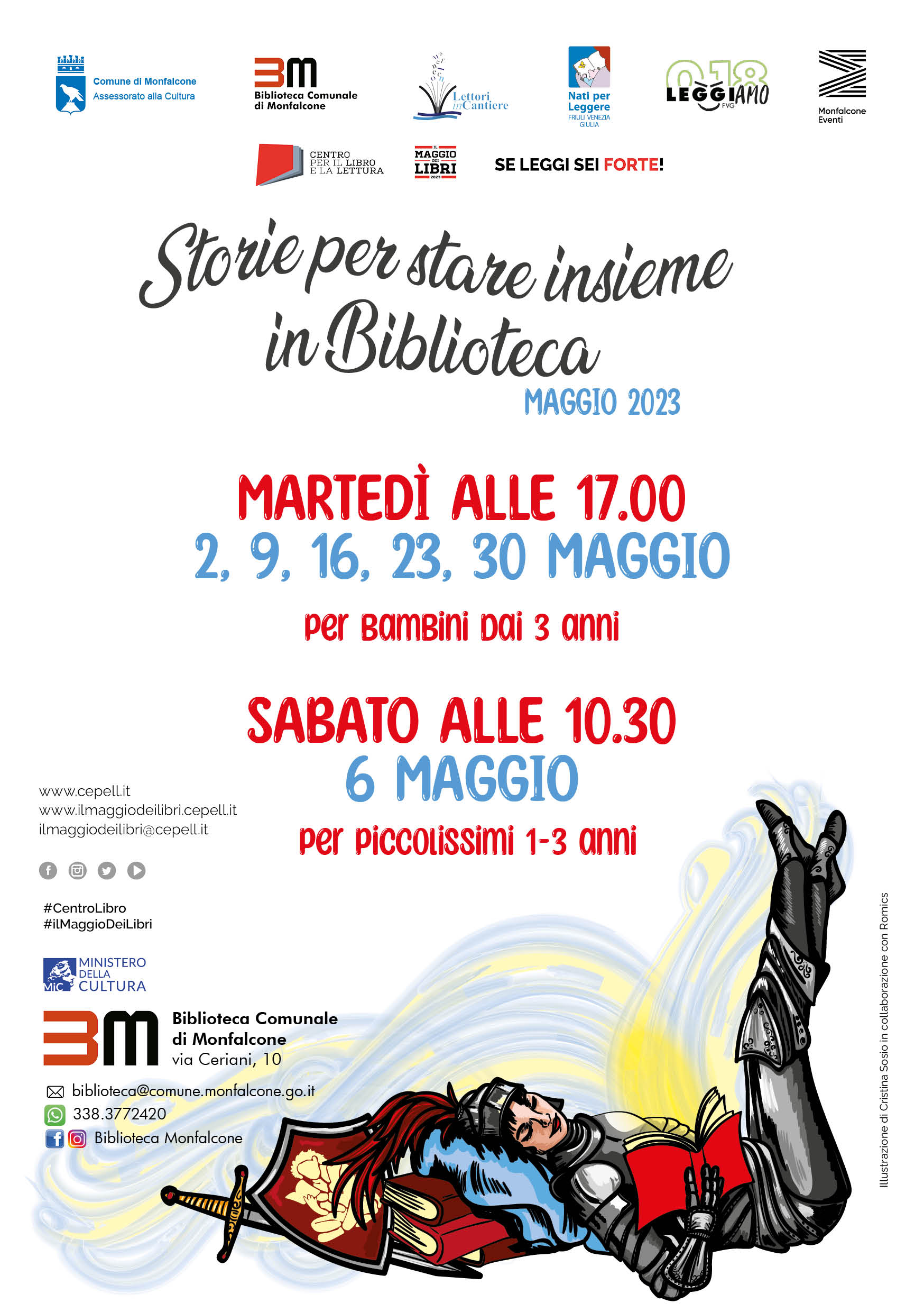 Sabato 6 maggio 2023 alle 10.30, verranno lette tantissime storie ai bambini da 1 a 3 anni di età. Gli eventi sono realizzati in collaborazione con i Lettori in Cantiere della biblioteca di Monfalcone.