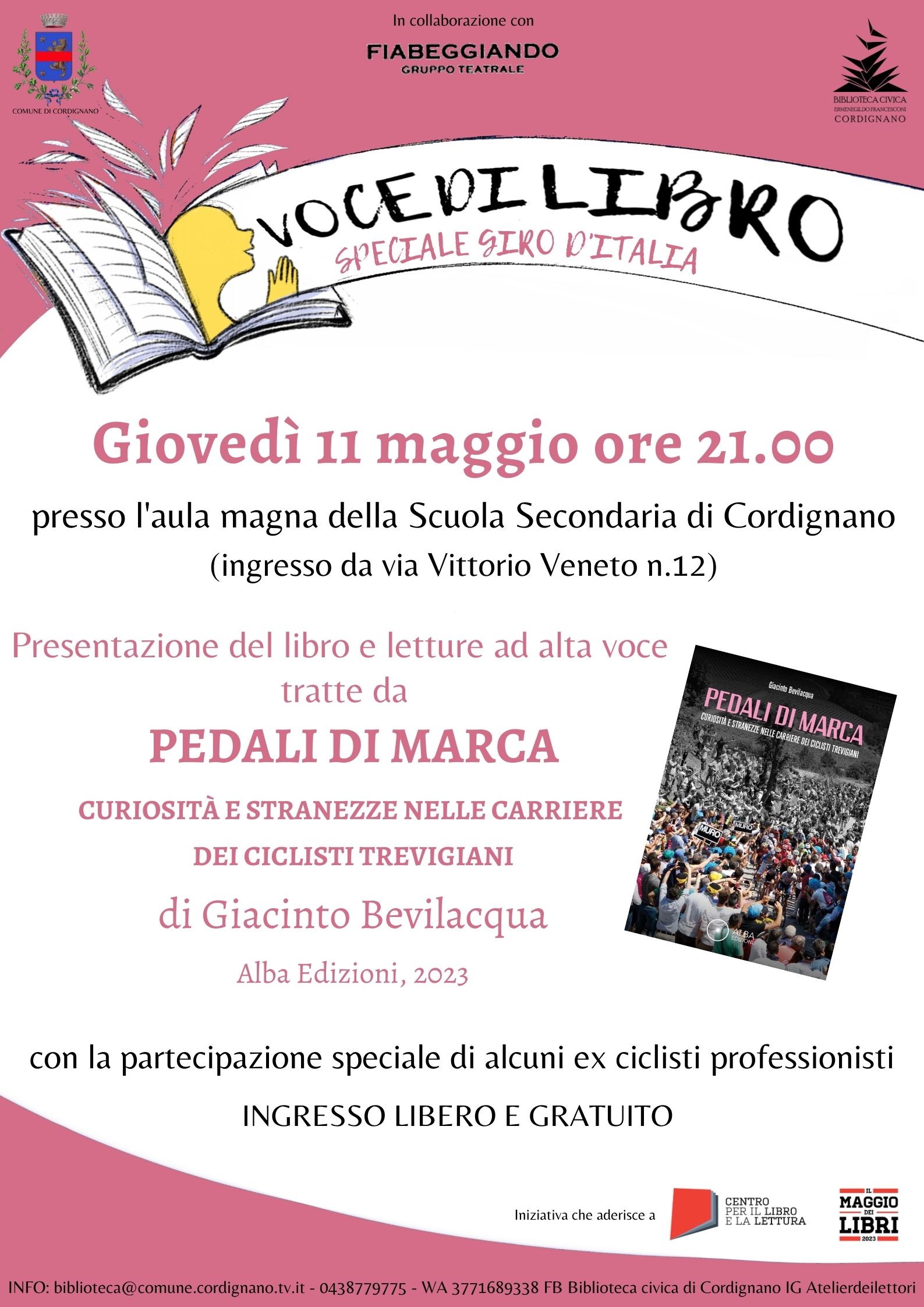 Presentazione del libro e letture ad alta voce tratte da "Pedali di Marca. Curiosità e stranezze nelle carriere dei ciclisti trevigiani" di Giacinto Bevilacqua, Alba Edizioni 2023. Evento che vede la partecipazione straordinaria di alcuni ex ciclisti professionisti di cui vengono narrate le vicende nel volume.