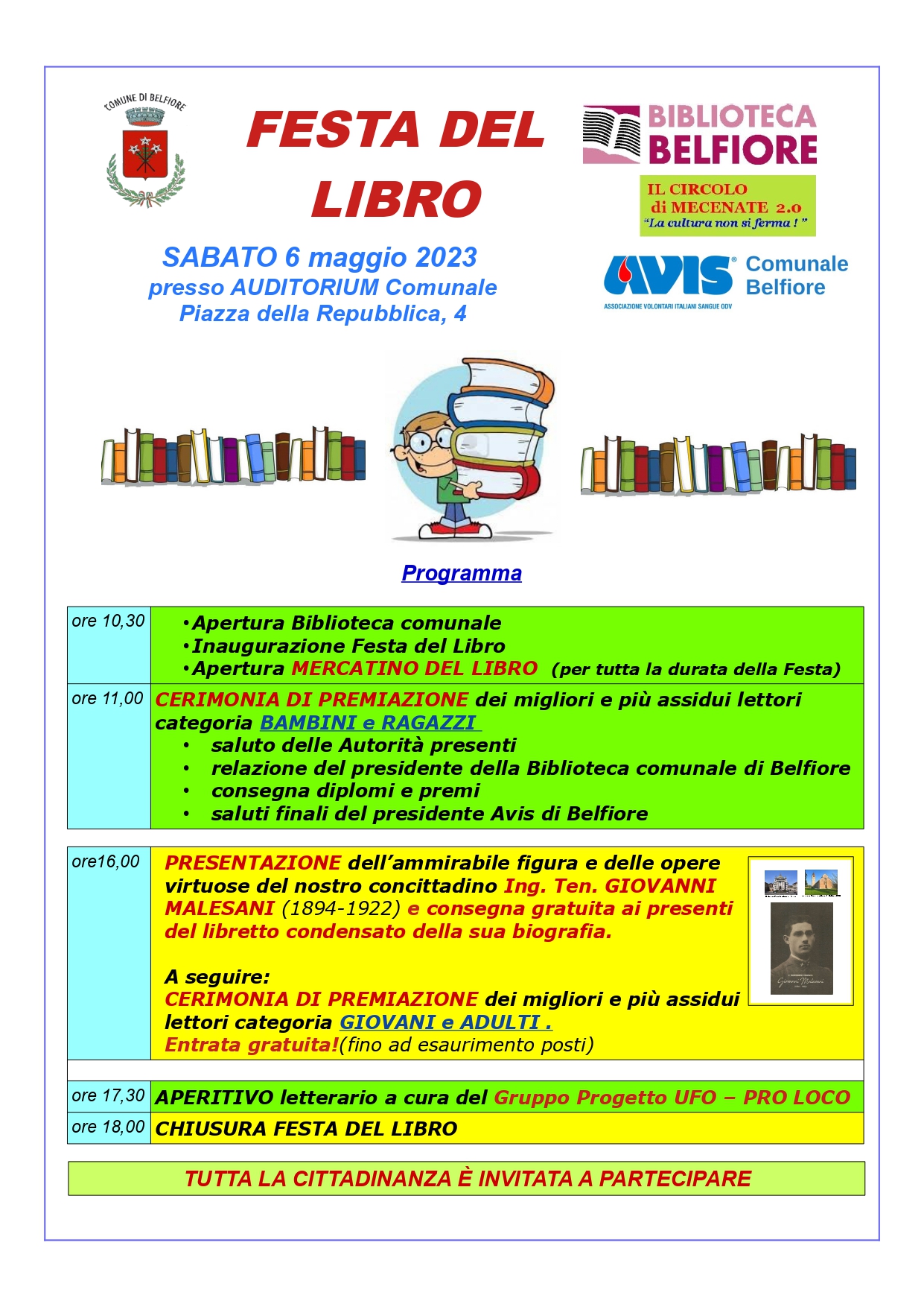 SINDACO del Comune di Belfiore Avv. Albertini Alessio, ASSESSORE ALLA CULTURA Avv. Mosele Arianna, PRESIDENTE AVIS Dott. Granetto IGOR,