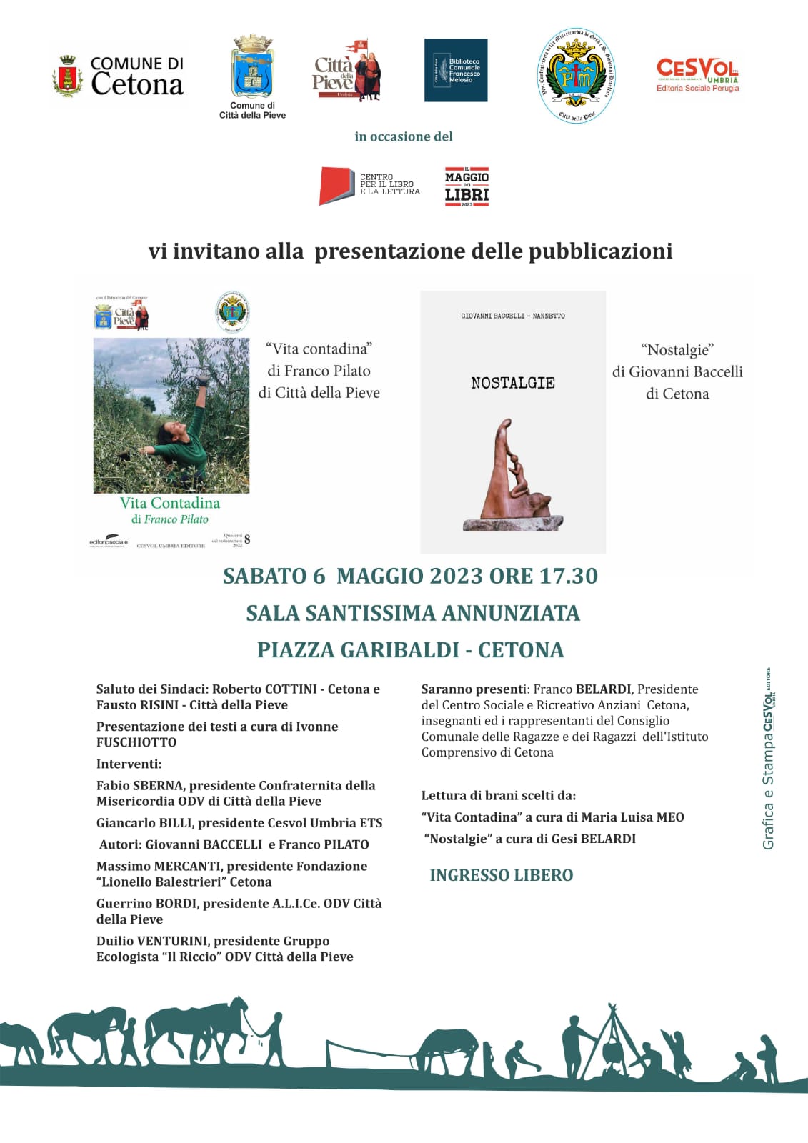 Presentazione libri "Vita contadina" di Franco Pilato e "Nostalgie" di Giovanni Baccelli. L'evento avrà luogo a Cetona (SI) - Sala Santissima Annunziata - Piazza Garibaldi