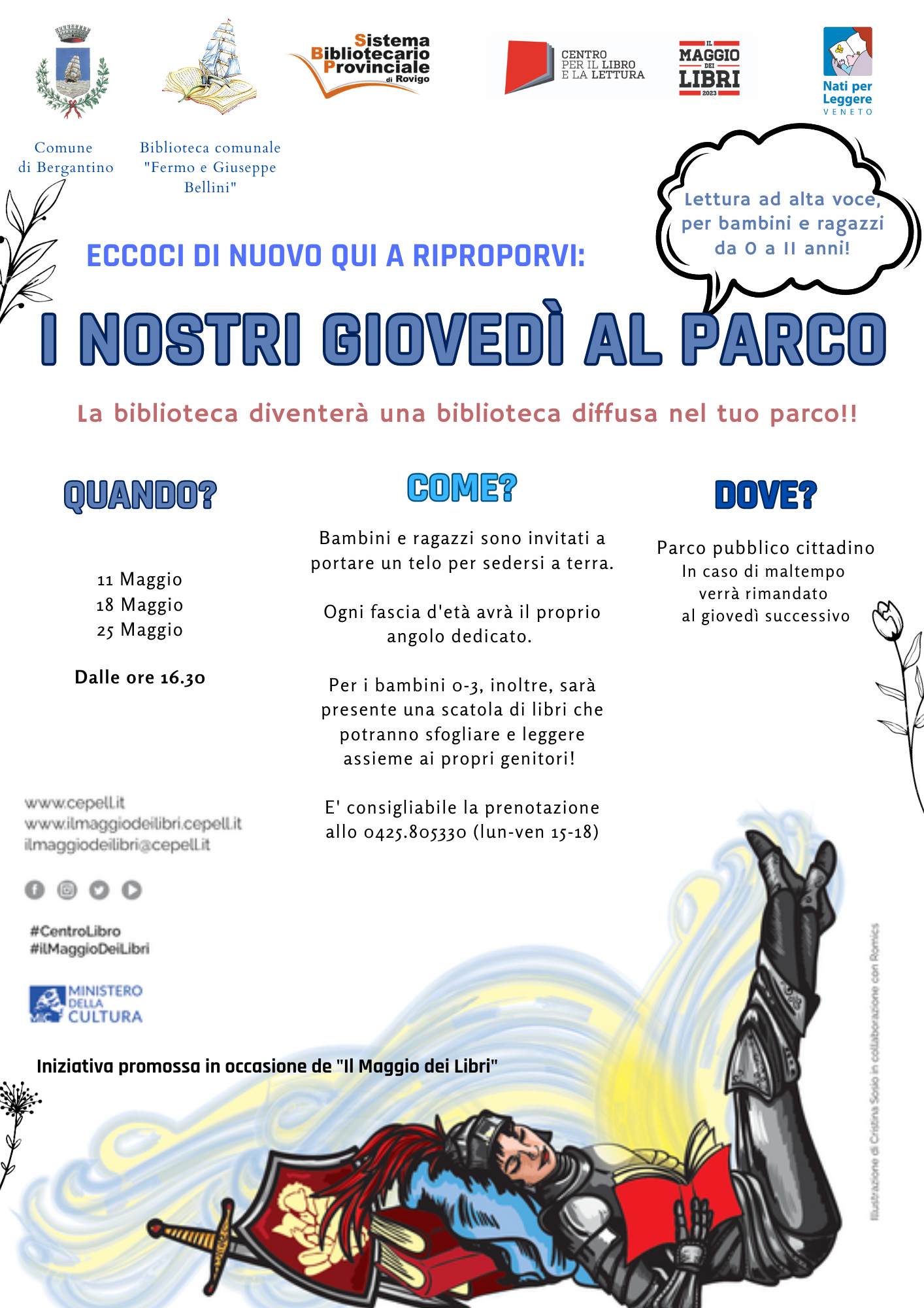La biblioteca diventerà una biblioteca diffusa presso il nostro bellissimo parco pubblico cittadino. Le letture ad alta voce sono rivolte a bambini e ragazzi da 0 a 11 anni.