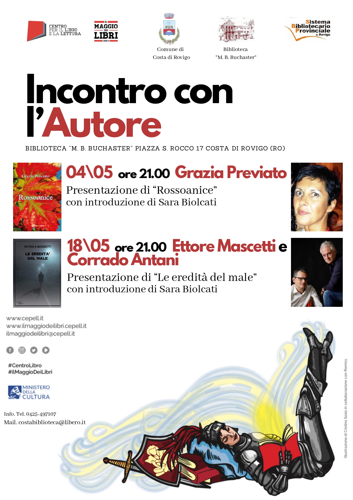 - 4 maggio 2023 presentazione del libro “RossoAnice” da parte della scrittrice Grazia Previato;