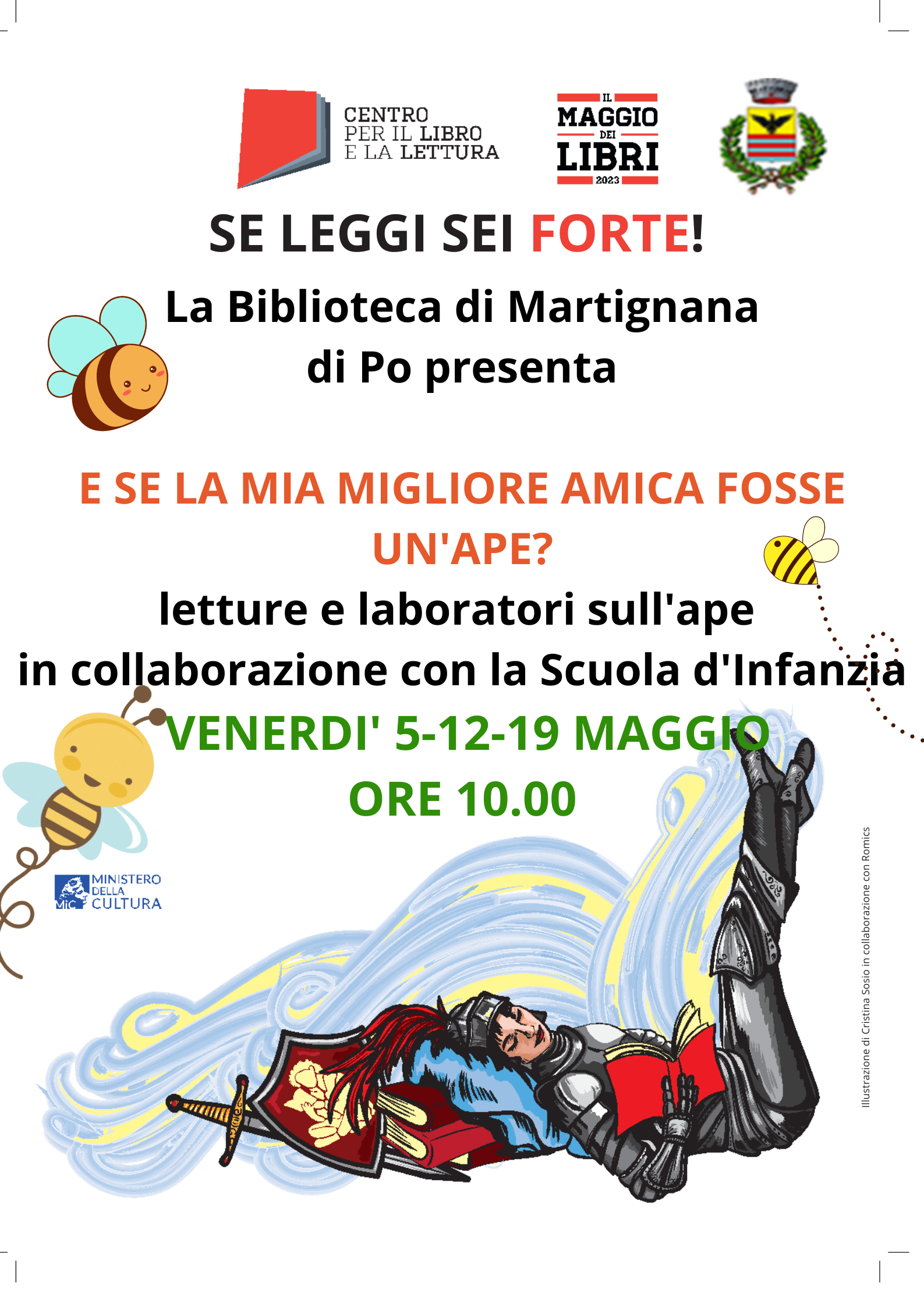 In collaborazione con le tre sezioni della Scuola d'Infanzia di Martignana di Po, sono stati organizzati in biblioteca 3 incontri di letture animate e laboratori che hanno come protagonista l'ape. In particolare con la sezione dei grandi dopo un momento di lettura a tema in apertura dell'incontro, i bambini hanno realizzato l'ape personalizzata col proprio nome da attaccare al favo ricavato da carta riciclata. Con la sezione dei mezzani ogni bambino ha composto la cella dell'alveare con la propria ape, infine con i piccoli abbiamo realizzato dei fiori pop-up colorati a tempera con l'ape al proprio interno. Gli incontri si inseriscono nell'ambito del progetto a tutela delle api realizzato dalla scuola d'infanzia.